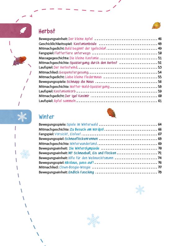 Mit Bewegung durch die vier Jahreszeiten! Den Kindern in ihrem natürlichen Bewegungsdrang entgegenzukommen und ihnen ganzheitliche Bewegungserfahrungen zu ermöglichen, ist ein wichtiger Teil in Ihrem pädagogischen Alltag. Das ganze Jahr über in Bewegung zu bl...