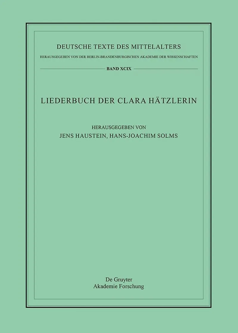 Das sog. Liederbuch der Clara Hätzlerin tradiert eine der bedeutendsten Textsammlungen des Spätmittelalters mit geistlicher und weltlicher Liebesdichtung. Neben anonymen Autoren sind auch bekannte Namen, wie Konrad von Würzburg oder Oswald von Wolkenstein ver...