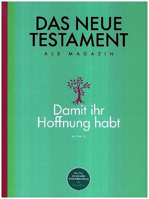 Neues Design - bewährter Inhalt! Das Neue Testament als Magazin ist der perfekte Einstieg in die Bibellektüre. Die Magazin-Ausgabe beinhaltet den vollständigen Bibeltext des Neuen Testaments. Das ansprechende Magazinformat bereitet dabei den Text typographisch...