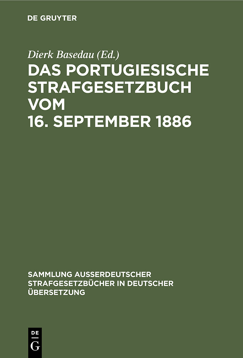 Keine ausführliche Beschreibung für "Das Portugiesische Strafgesetzbuch vom 16. September 1886" verfügbar. Frontmatter -- INHALTSVERZEICHNIS -- QUELLENANGABEN -- ABKÜRZUNGSVERZEICHNIS -- EINLEITUNG / Beleza dos Santos, José -- 1. Buch. ALLGEMEINE BES...