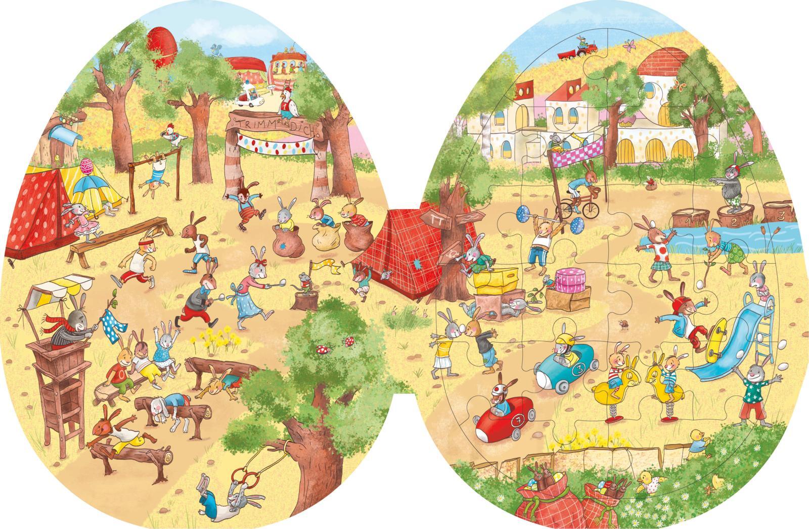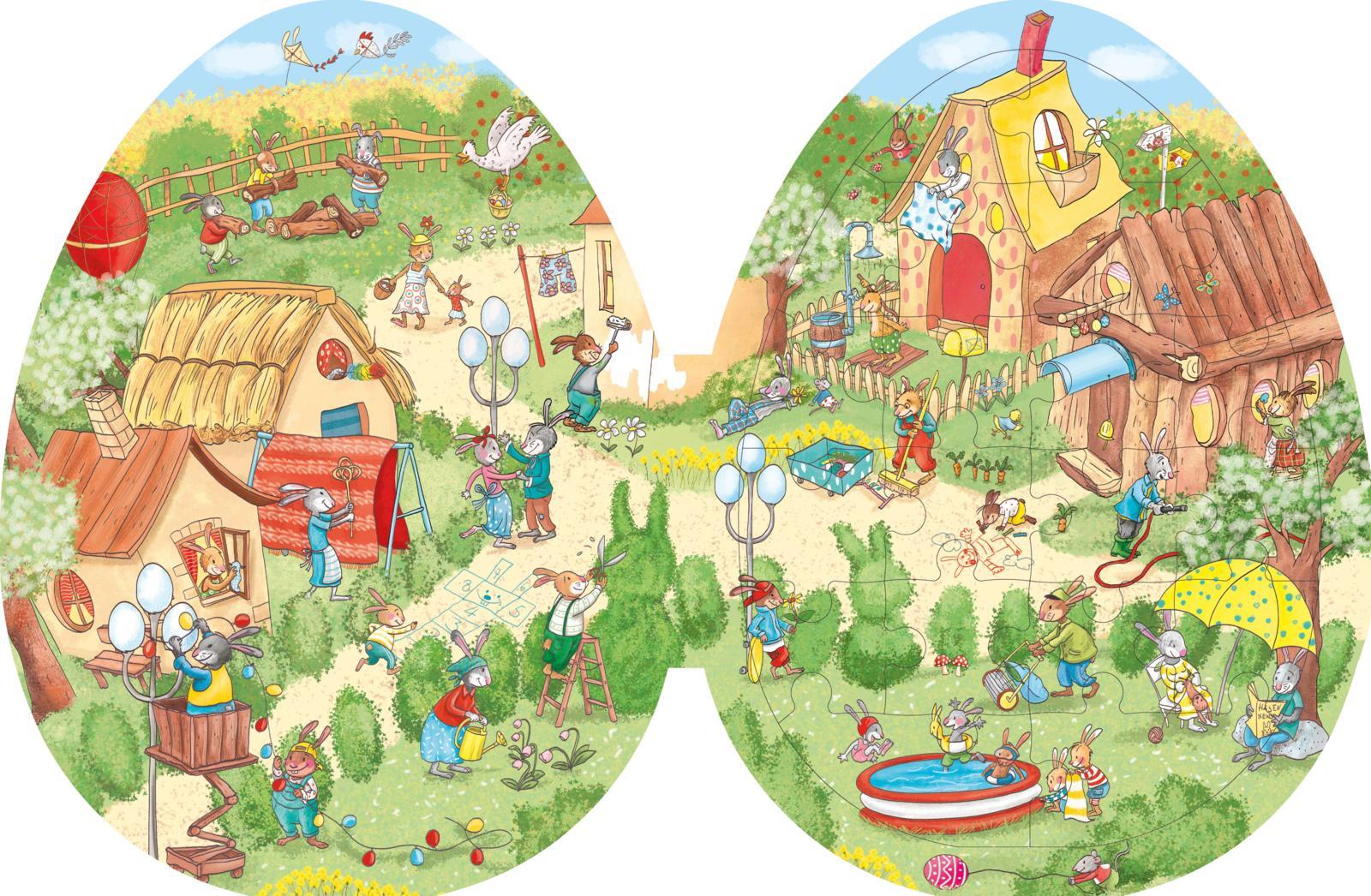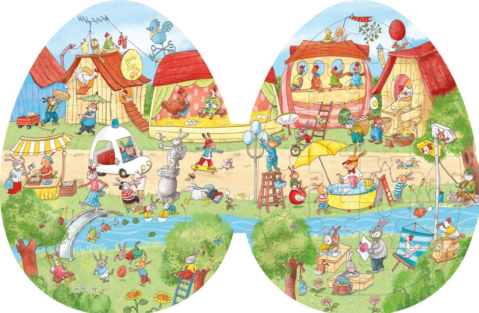 Ein Wimmelbuch in Osterei-Form mit 4 großen Puzzles für fröhlichen Such- und Spielspaß an Ostern! Was zum Suchen, was zum Nacherzählen und was zum Puzzeln drei Überraschungen in einem großen Ei! Die vier fröhlichen Puzzle-Motive lassen sich leicht aus dem Buc...