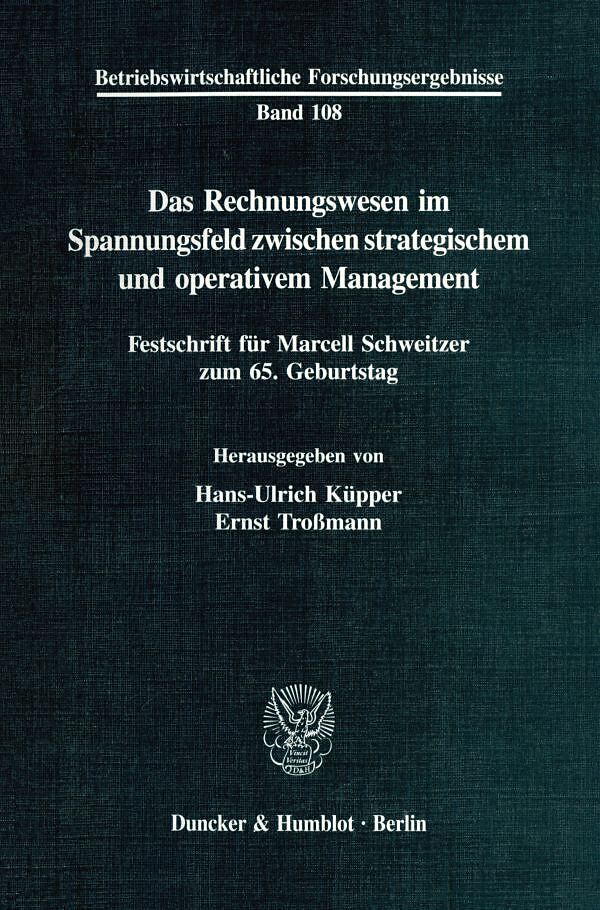 Am 18. Oktober 1997 wird Prof. Dr. Marcell Schweitzer 65 Jahre alt. Aus diesem Anlaß widmen ihm Schüler und Kollegen eine Festschrift zu einem seiner zentralen Themen, dem »Rechnungswesen im Spannungsfeld zwischen strategischem und operativem Management«. Schw...