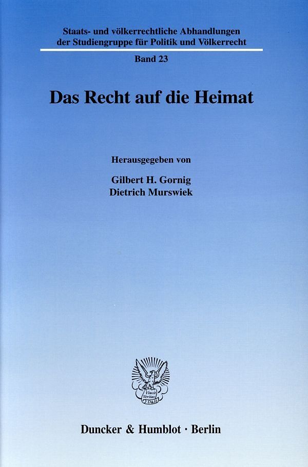 Das 20. Jahrhundert ist oft als "Jahrhundert der Vertreibungen" bezeichnet worden. Dieses Jahrhundert hat auch vielfältige politische und juristische Bemühungen hervorgebracht, die Vertreibungen, "ethnischen Säuberungen" - entgegenwirken und den Menschen das R...