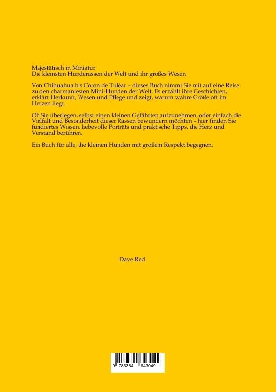 Dieses Buch ist eine liebevolle Hommage an die kleinsten Hunderassen der Welt. Es zeigt, dass wahre Größe nicht in Zentimetern oder Kilogramm gemessen wird, sondern im Charakter, Mut und der tiefen Verbundenheit zu ihren Menschen. Von Chihuahua bis Coton de Tu...