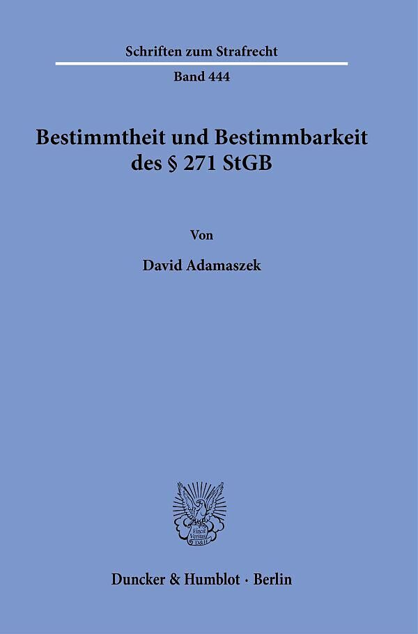 Der bislang wenig untersuchte Tatbestand des § 271 StGB begegnet insbesondere in Bezug auf Art. 103 Abs. 2 GG erheblichen rechtlichen Bedenken. Die Arbeit prüft die Bestimmtheit des § 271 StGB, ordnet die Norm als Blankett-Straftatbestand ein und zeigt die ver...