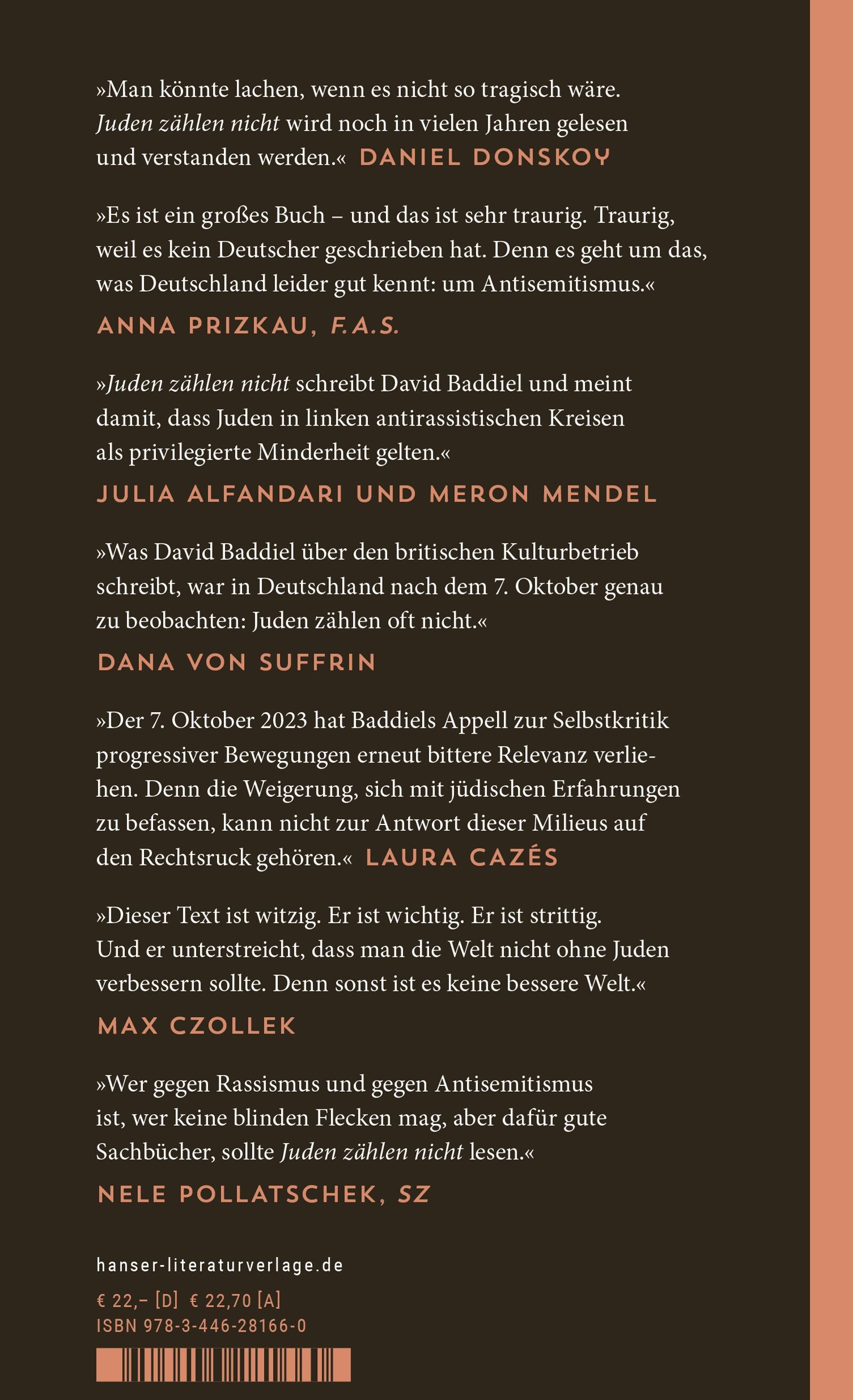 Wer gegen Rassismus und gegen Antisemitismus ist, wer keine blinden Flecken mag, aber dafür gute Sachbücher, sollte dieses Buch lesen. So schrieb 2021 Nele Pollatschek nach dem Erscheinen dieses Buches unter anderem Titel. Jews don't count Juden zählen nicht i...