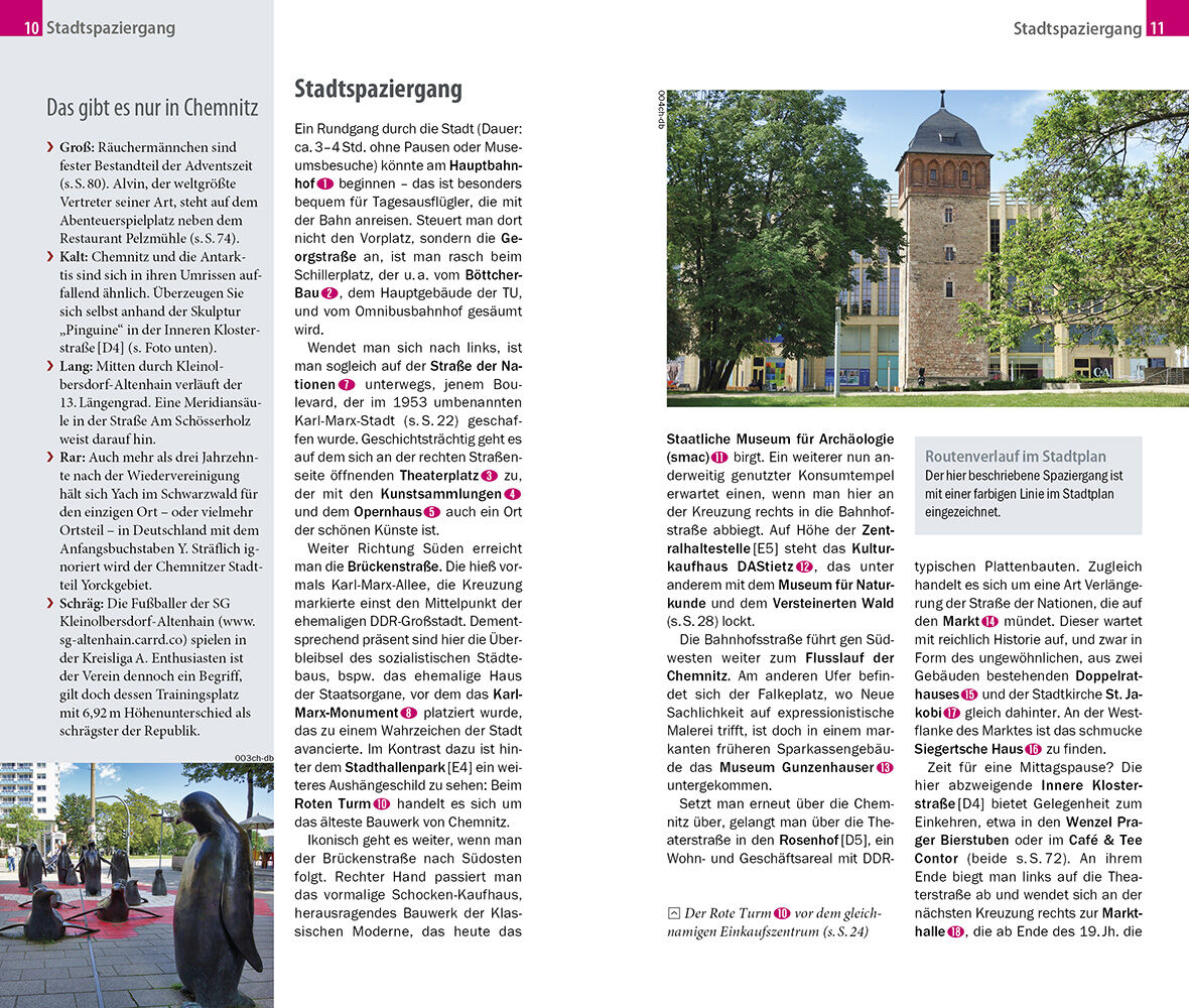 Chemnitz ist geprägt von Kontrasten und Kontroversen, von geschichtlichen wie aktuellen politischen, kulturellen und ästhetischen Gegensätzen. Der überlebensgroße Marx schaut auf den mittelalterlichen Roten Turm, während sich neben dem fossilen Versteinerten ...
