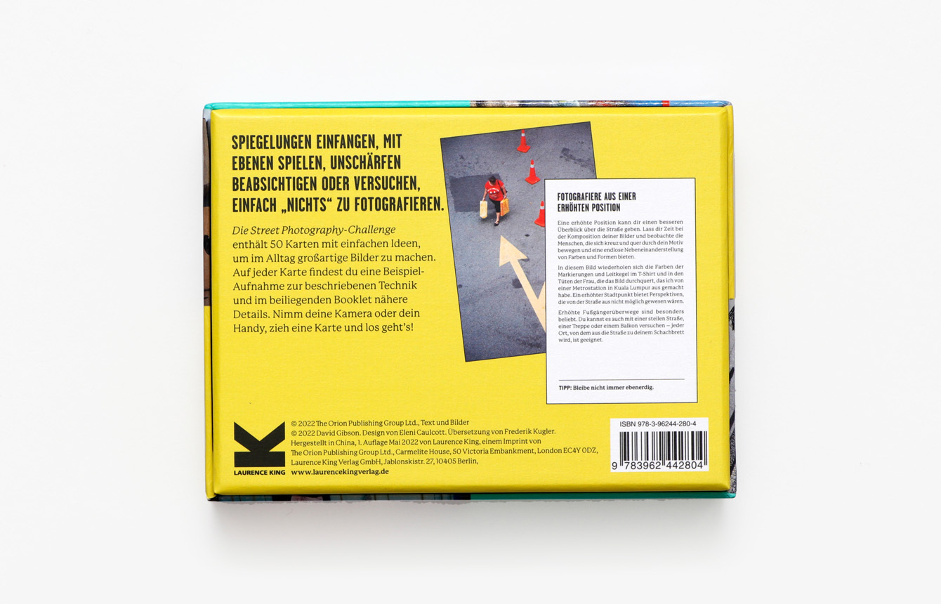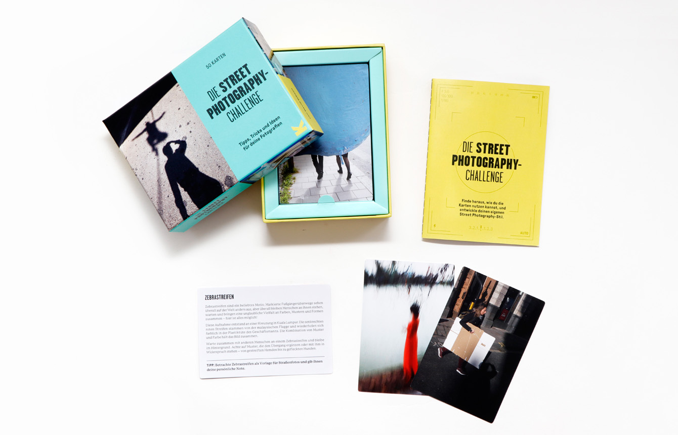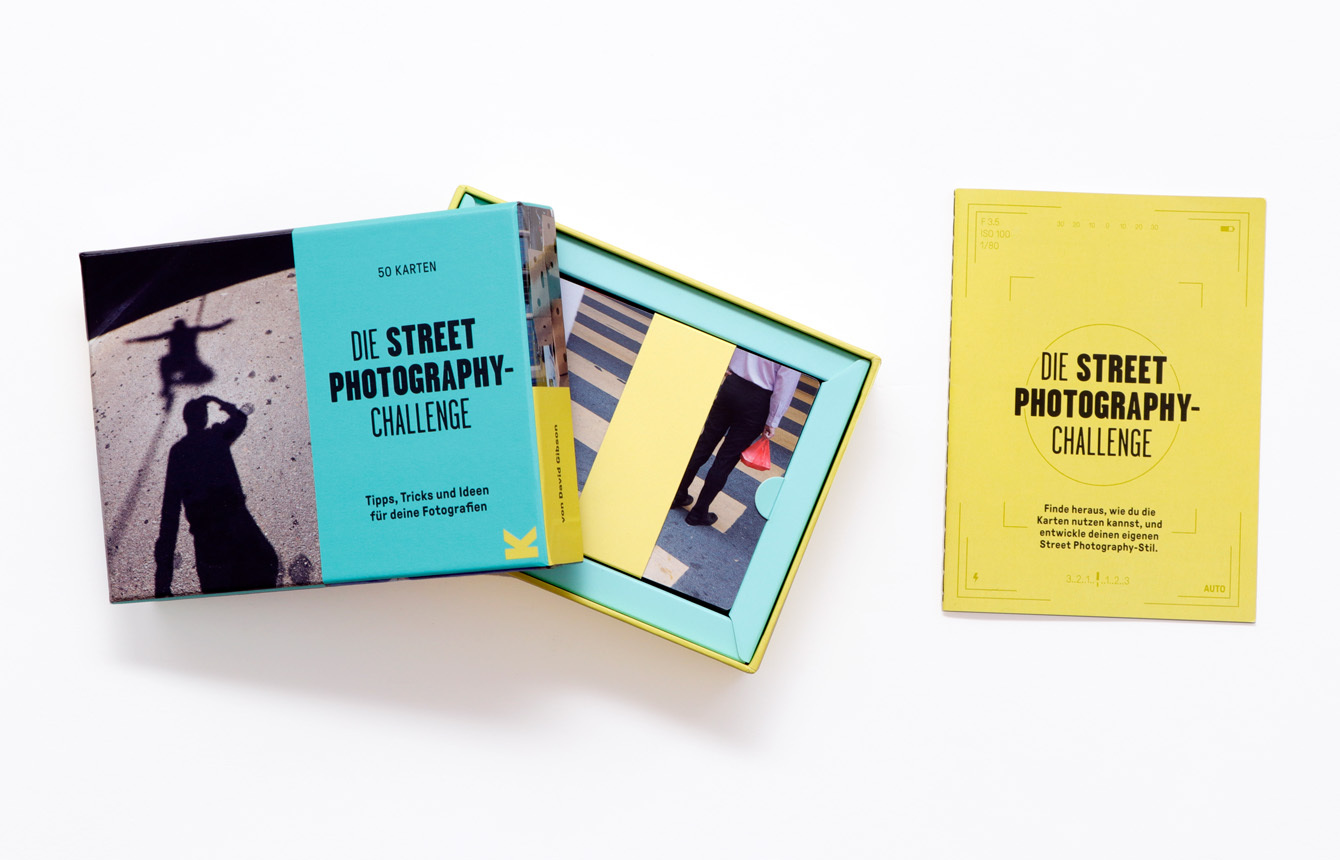 Von den Profis lernen: Fangen Sie eine Reflexion ein, spielen Sie mit den Bild-Ebenen, produzieren Sie gewollt Unschärfe oder versuchen Sie einmal, "nichts zu fotografieren". Die Street Photography- Challenge ist eine Box mit 50 Karten, von denen jede eine ein...