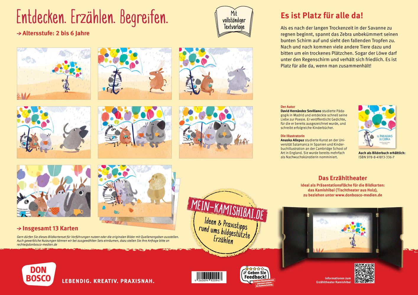 Tiergeschichte über Gemeinschaft, friedliches Miteinander und Zusammenhalt. Geeignet für Kinder ab 3 Jahren, für den Einsatz in Kita & Grundschule. Friedliches Miteinander unter dem Regenschirm: Es ist Platz für alle da! Als es nach der langen Trockenzeit ...