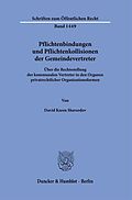 »Obligations and Conflicts of Duties of Municipal Representatives. About the Legal Status of Municipal Representatives in the Bodies of Forms of Organization under Private Law« If municipalities perform administrative tasks in forms of organization under private law, they are obliged under municipal law to ensure comprehensive rights of influence and control over these companies. This often leads to frictions with corporate law, which is oriented towards private autonomy. In this context, the position of municipal representatives in the organs of private law corporate forms is particularly conflict prone. The author develops a solution for these regime collisions.