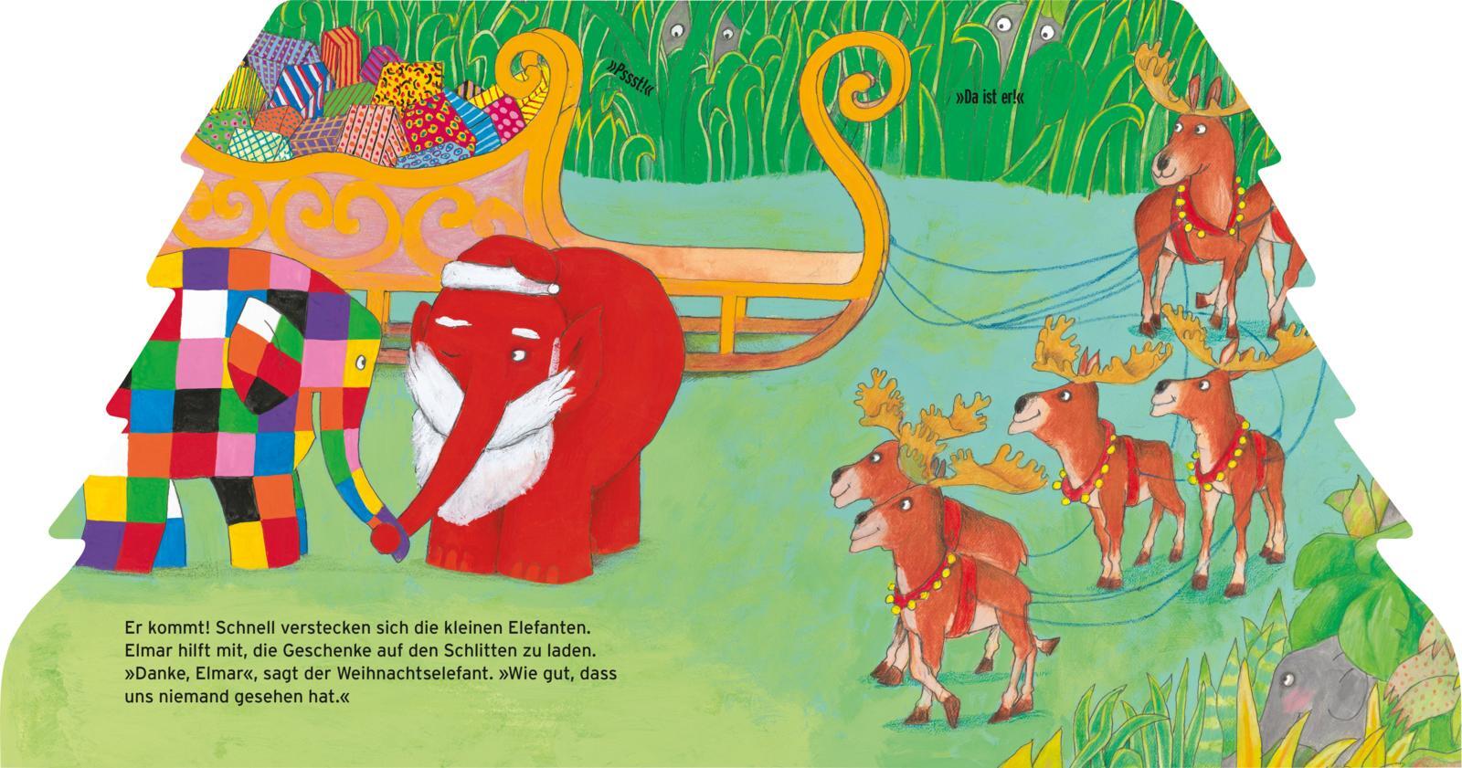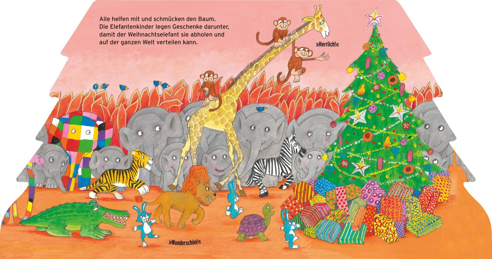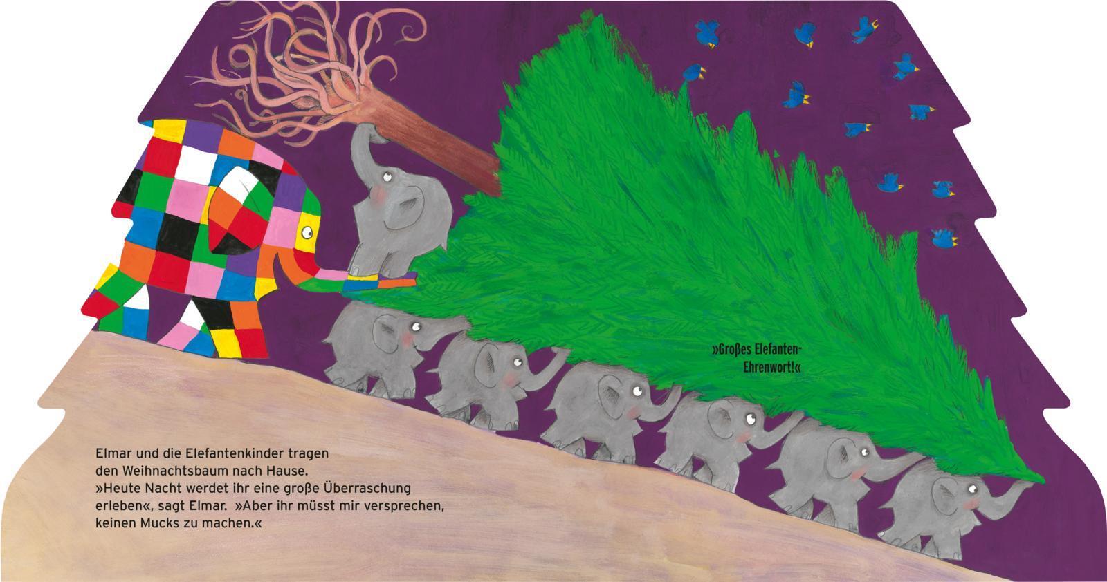 Dieses in Form eines Tannenbaums gestaltete Pappbilderbuch lädt Kleinkinder ab 18 Monaten zu einem stimmungsvollen Weihnachtsabenteuer mit Elmar ein. Elmar sucht einen besonders schönen Weihnachtsbaum aus und bastelt mit seinen Freunden lauter tolle Geschenke...