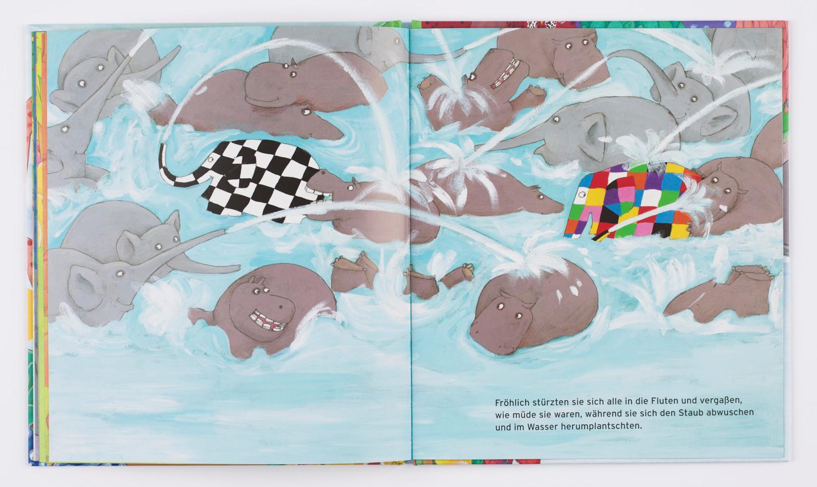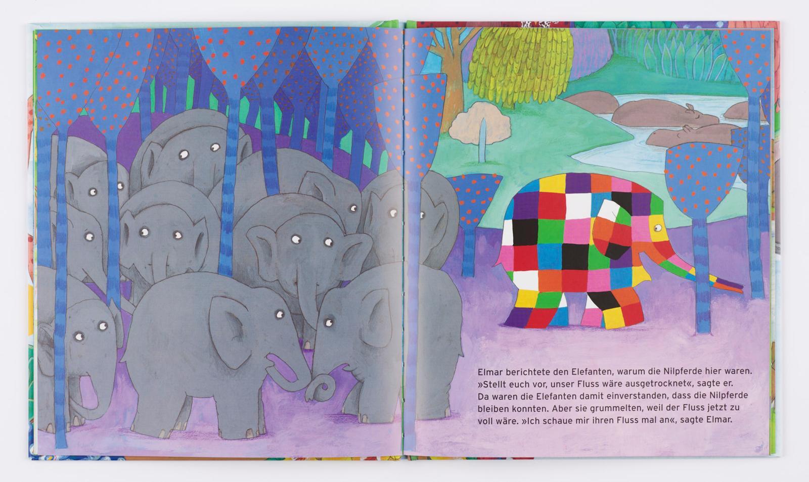 Ein Bilderbuchabenteuer von Elmar, dem bunt karierten Elefanten, für Kinder ab 4 Jahren. Eines Tages baden plötzlich Nilpferde in dem Fluss, in dem sonst nur die Elefanten baden. Die Elefanten sind empört! Elmar aber hört sich an, was die Nilpferde zu erzähle...