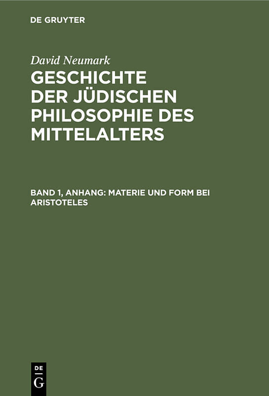 David Neumark: Geschichte der jüdischen Philosophie des Mittelalters / Materie und Form bei Aristoteles