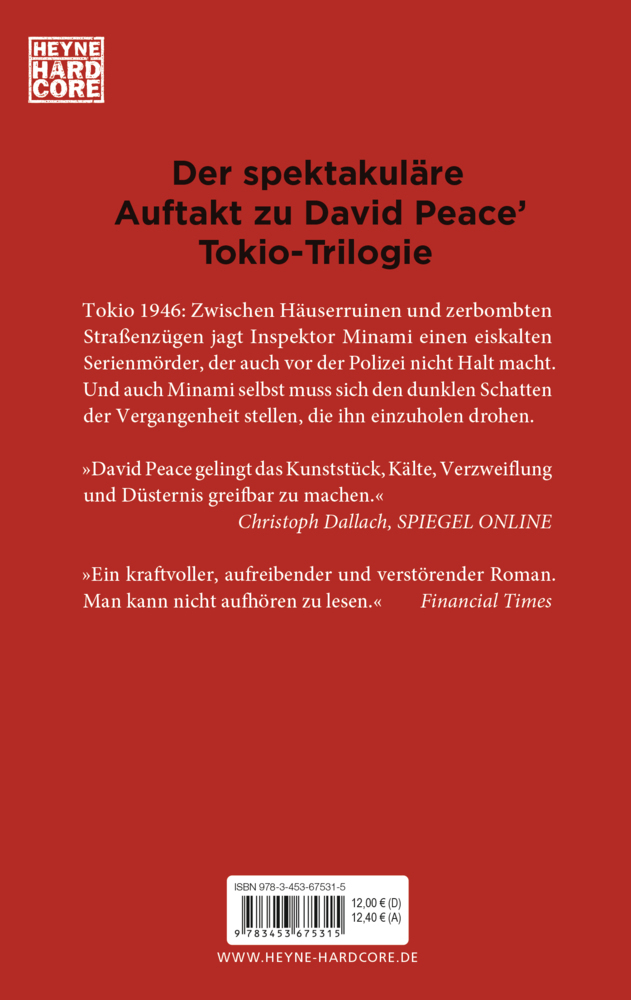 Der spektakuläre Auftakt zu David Peace' lang erwarteter Tokio-Trilogie Tokio 1946: Zwischen Häuserruinen und zerbombten Straßenzügen jagt Inspektor Minami einen eiskalten Serienmörder, der auch vor der Polizei nicht haltmacht. Und auch Minami selbst muss sich...