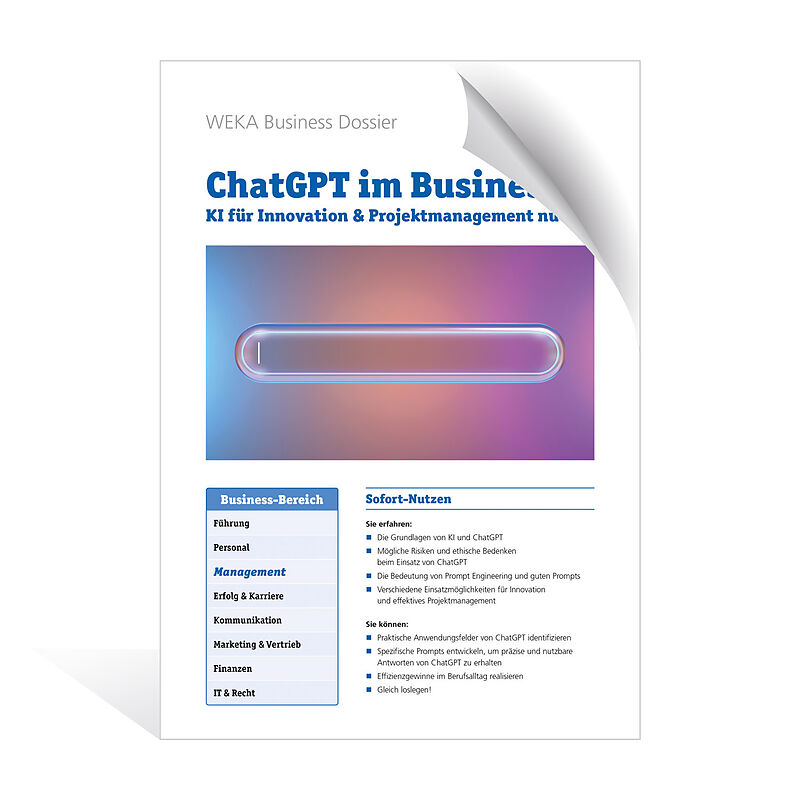 ChatGPT eine fortgeschrittene Form der künstlichen Intelligenz kann ein effektiver und produktiver Partner im Geschäftsalltag sein. Dieses Dossier richtet sich an alle, die neugierig sind, wie ChatGPT in der beruflichen Praxis eingesetzt werden kann, um die Ef...