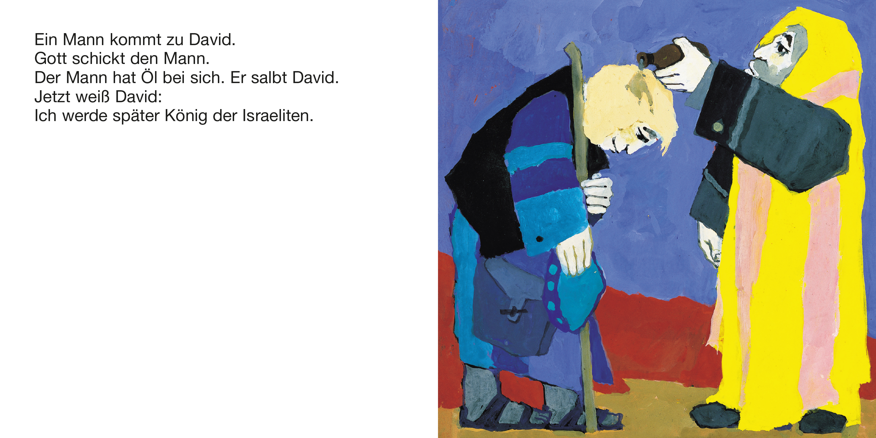 "David wird König" gehört zur Reihe "Was uns die Bibel erzählt". Eine Serie in Kleinformat. Kees de Korts liebevolle Illustrationen lassen die Geschichte vom Hirtenjungen David in eindrücklichen Motiven und klaren Farben erstrahlen. Dieses kleine Bilderbuch is...