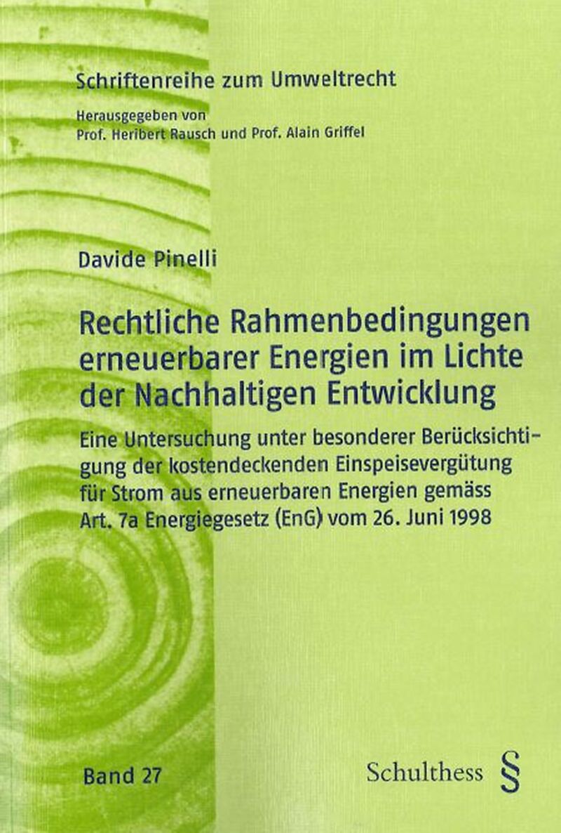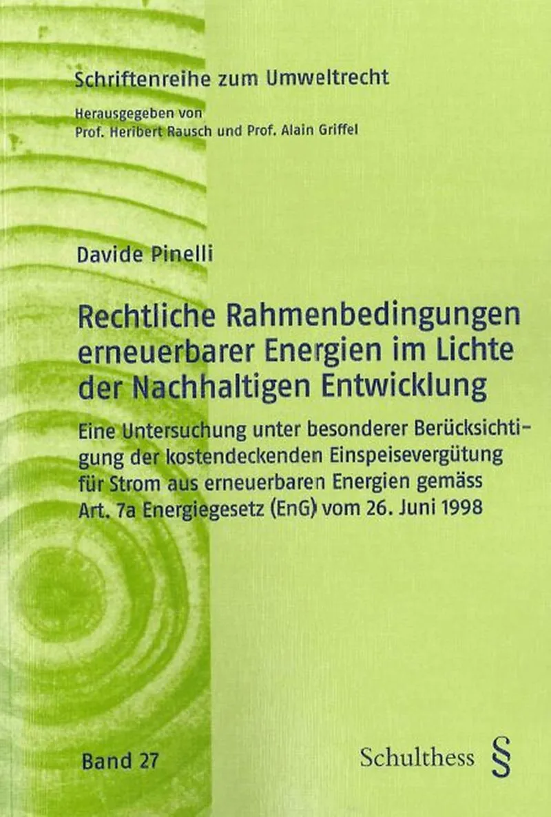 Die vorliegende Arbeit untersucht die rechtlichen Rahmenbedingungen der erneuerbaren Energien im schweizerischen Recht unter Berücksichtigung der Theorie der Nachhaltigen Entwicklung. Im Mittelpunkt steht die Entwicklung eines energiespezifischen Nachhaltigkei...