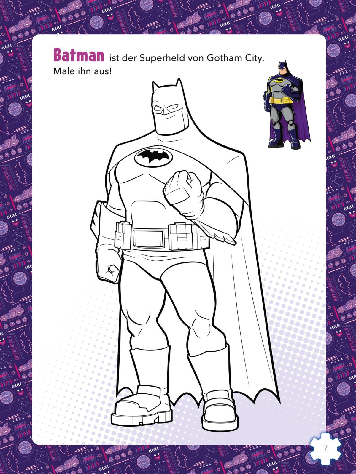 Auf in die Abenteuer von Gotham City! Batman bekommt Unterstützung in seinem Kampf gegen das Böse - in mehr als 40 spannende Rätseln und coole Ausmalbildern mit den beliebten Batwheels-Fahrzeugen. Die heldenhaften Fahrzeuge von Batman, wie das Batmobil und Mo...