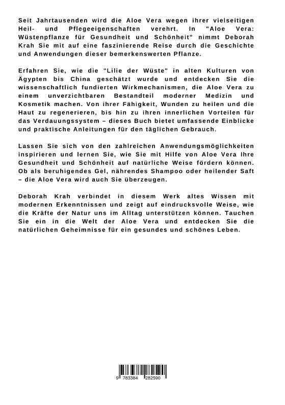 Seit Jahrtausenden wird die Aloe Vera wegen ihrer vielseitigen Heil- und Pflegeeigenschaften verehrt. In "Aloe Vera: Wüstenpflanze für Gesundheit und Schönheit" nimmt Deborah Krah Sie mit auf eine faszinierende Reise durch die Geschichte und Anwendungen dieser...