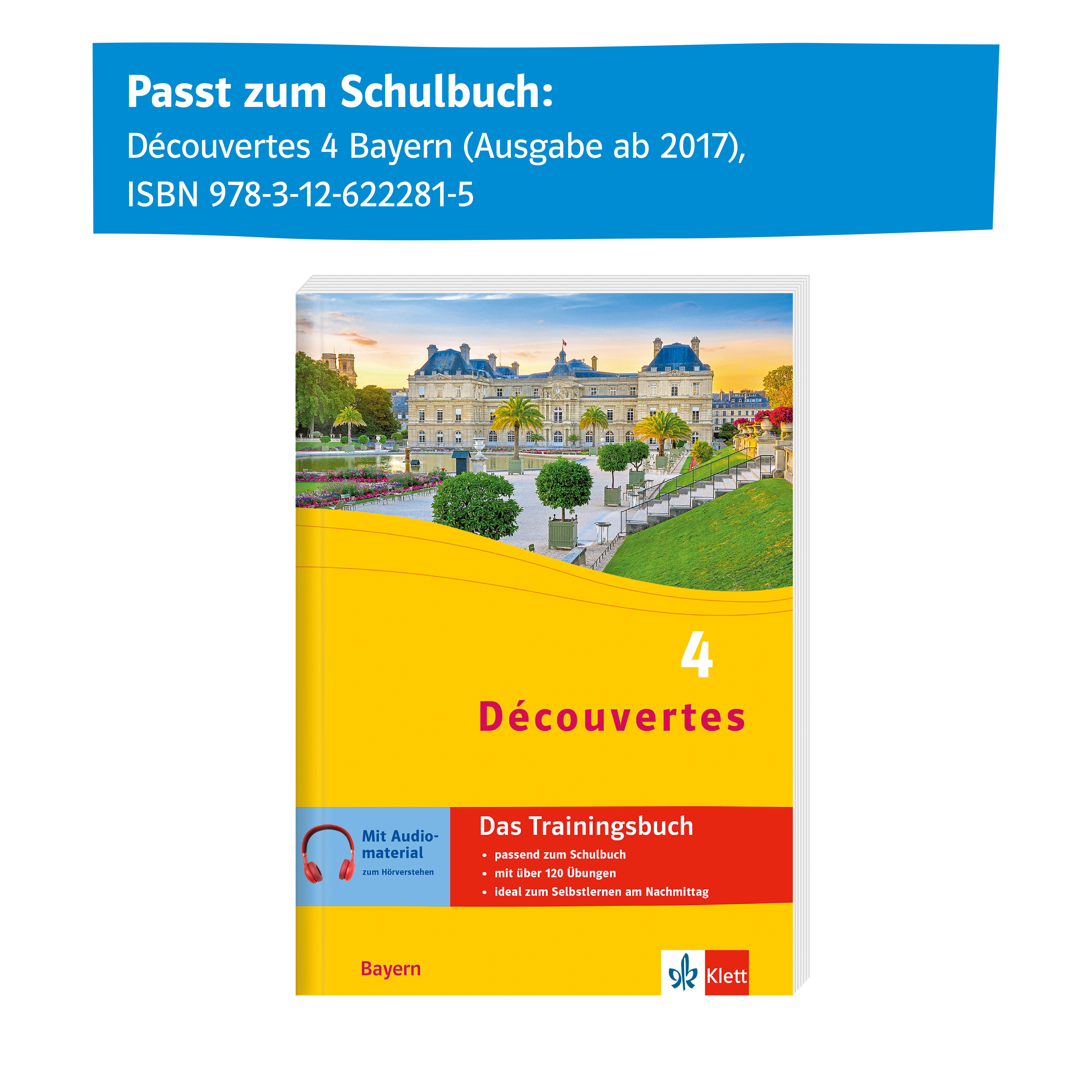 Trainingsbuch zum Schulbuch Découvertes 4 für Bayern Dieses Trainingsbuch passt nur zum Schulbuch Découvertes 4 Bayern (Ausgabe ab 2017), ISBN 978-3-12-622281-5 Das Trainingsbuch ist ideal für das selbstständige Lernen am Nachmittag: Lektion für Lektion alles...