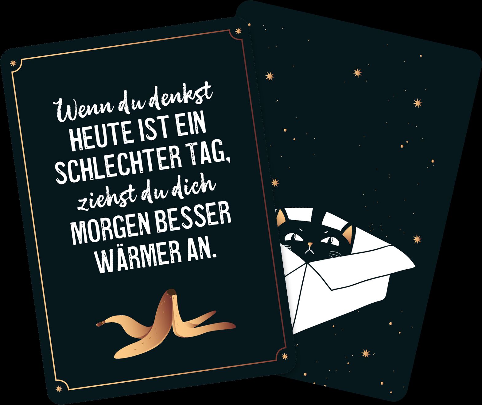 Schwarzer Humor pur Freches Orakel-Kartenset, das ein mieses Schicksal prophezeit Bist du auf der Suche nach einer frechen Abwandlung klassischer Orakelkarten zum Verschenken oder brauchst eine Portion schwarzen Humor? Dann bist du bei diesem handlichen Karte...