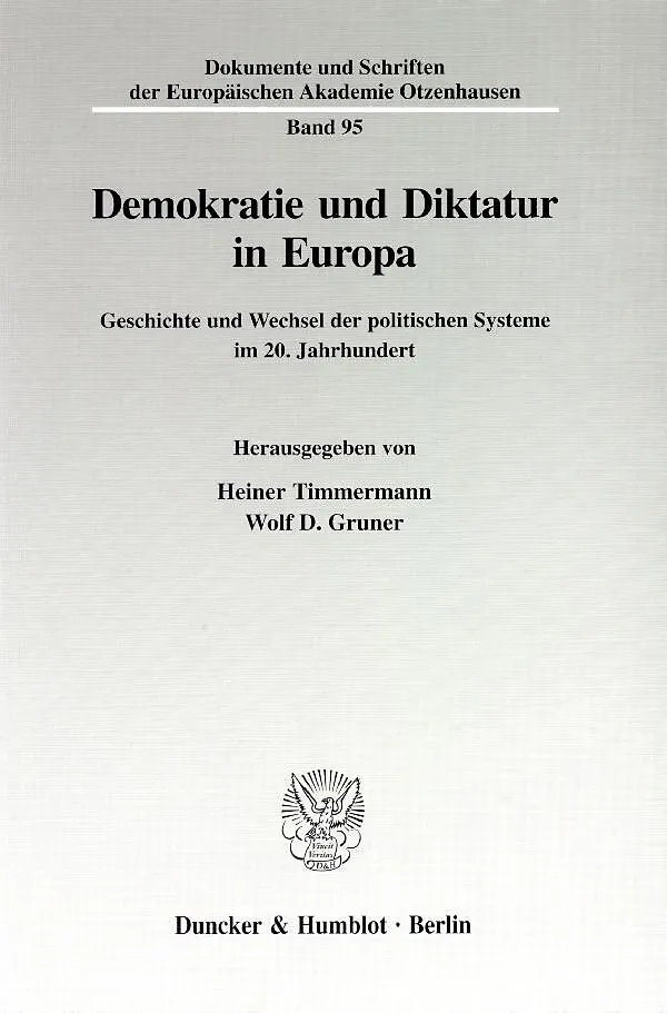 Inhalt: H. Timmermann, Einführung - G. Schulz, Demokratie und Diktatur - M. Zgórniak, Totalitarismus und Militarismus - M. Salewski, Diktatur zum Paradies: Die Science Fiction des frühen 20. Jahrhunderts. Ein Essay - H. Reinalter, Die Anfänge der Demokratie von der Aufklärung bis zur Revolution 1848/49 - W. Pfeiler, Der Begriff Faschismus als politisches Instrument und als wissenschaftliche Kategorie - L. Radka, Zum Vergleich der Diktaturen in den baltischen Staaten in der Zwischenkriegszeit - E. Brocklová, Theorie und Praxis dreier Demokratien nach dem Ersten Weltkrieg: Deutschland, Österreich und die Tschechoslowakei - R. Kessler, Bedingungen und Voraussetzungen für Reformpolitik in SSR und DDR vor dem "Prager Frühling" - E. Nolte, "Gulag" und "Auschwitz": Unvergleichbarkeit, Parallele, kausaler Nexus? - B. Rill, Produktion von Geschichtsmythen als Voraussetzung für totalitäre Staatsideologie - I. Bernik, Intellectuals in the Transition from Imagined to Real Existing Democracy - I. Bernik / N. Fabjanèiè, Das alte Regime in Erinnerung: Diktatur oder wohlwollender Autoritarismus? - H. Horn, Zur Wirkung scheindemokratischer Attribute auf die Reform- und Transformationsfähigkeit kommunistisch-totalitärer Diktaturen - B. Rill, Die neapolitanische (parthenopäische) Republik 1799. Der erste demokratische Versuch in Unteritalien - W. Häusler, 1848: Das Geburtsjahr der Demokratie in Österreich - A. Gernert, Faschismus versus Totalitarismus. Der Faschismus in Italien - K.-E. Lönne, Zur Demokratiekritik Gaetano Moscas - H. Timmermann, Der Fall Deutschland von 1919-1945 - G. Heydemann / C. Beckmann, Zwei Diktaturen in Deutschland. Überlegungen zu Möglichkeiten und Grenzen des historischen Diktaturenvergleichs - R. Rytlewski, Die Politik als Bauherr im nationalsozialistischen Berlin und im sowjetsozialistischen Ost-Berlin - S. Gerstengarbe, Die Deutsche Akademie der Naturforscher Leopoldina in der Zeit des "Dritten Reiches", in der SBZ und in der frühen DDR-Zeit - A. Peter, Spanien unter Franco - R. Höhne, Das Regime von Vichy. Ein europäischer Sonderfall autoritärer Herrschaft? - D. Jena, Die Sowjetunion 1917-1991. Die rote Diktatur. Zu den historischen Ursachen der Lenin-Stalin-Diktatur - A. Filitov, Erste Risse im totalitären Weltbild. Die internen Vorlagen und Denkansätze in den sowjetischen Partei- und Staatsgremien am Vorabend der Entstalinisierung, 1953-1956 - H. Wassmund, Das Ende der Sowjetunion. Voraussetzungen, Verlauf, Konsequenzen - E. Kouri, Die Geburt des demokratischen Finnlands. Von der Autokratie zur Demokratie - S. Parkes, 'Die älteste Demokratie der Welt': Immer noch vorbildlich? Gedanken zum politischen System Großbritanniens - I. King, Das geteilte Königreich? Probleme der Demokratie im schottisch-englischen Verhältnis - M. Howarth, Demokratischer Wiederaufbau im Nachkriegs-Deutschland. Konzeptionen und Probleme aus britischer Sicht - H. Timmermann, Demokratieprinzipien im Grundgesetz der Bundesrepublik Deutschland
