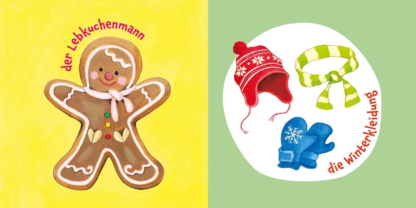 Erste Bilder und erste Wörter rund um die Winter- und Weihnachtszeit! Das gehört alles zum Winter: Ein warmer Kakao, bunte Baumkugeln, glitzernde Schneeflocken... und natürlich ein wunderschön geschmückter Tannenbaum! Mit klaren und altersgerechten Bildern: e...