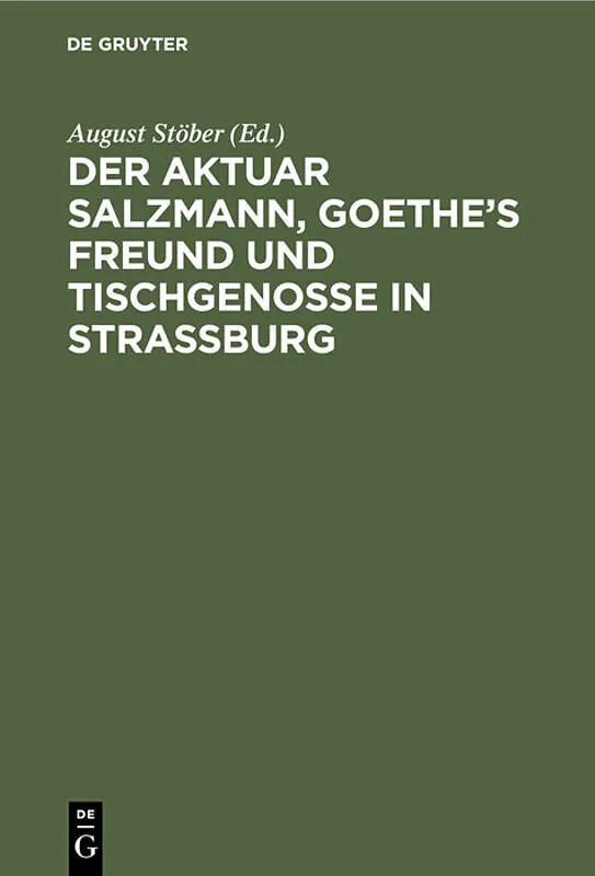 Keine ausführliche Beschreibung für "Der Aktuar Salzmann, Goethe's Freund und Tischgenosse in Straßburg" verfügbar. Frontmatter -- Vorwort. -- I. Der Äkluar Salzmann und keine Freunde. -- Mitgetheilt von August Stöber. -- 1. Briefe von Göthe an ...