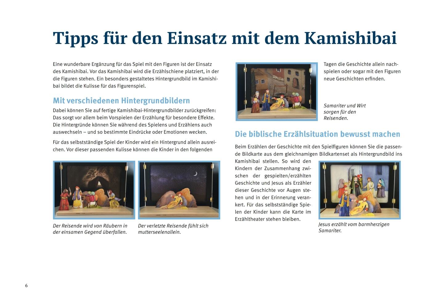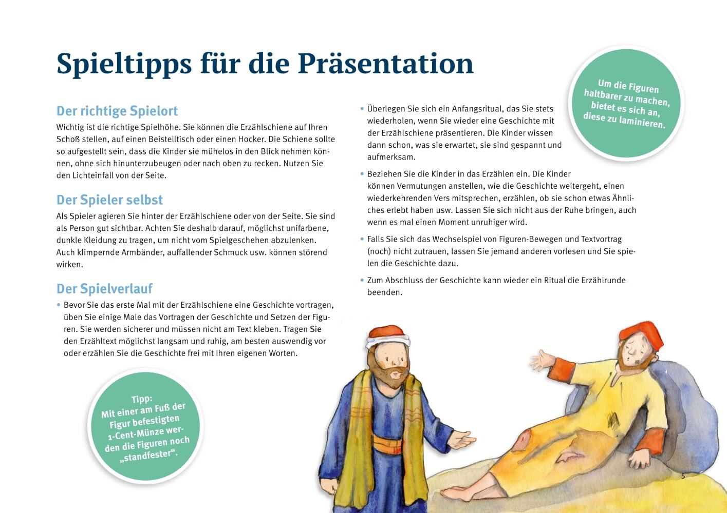 Mit den Bibel-Spielfiguren spielen die Kinder die Geschichte vom Barmherzigen Samariter aus der Bibel auf der Erzählschiene nach. Ein Mann wird von Räubern überfallen. Verletzt bleibt er am Wegrand liegen. Jeder, der vorbeigeht, hat seine Gründe, ihm nicht zu ...