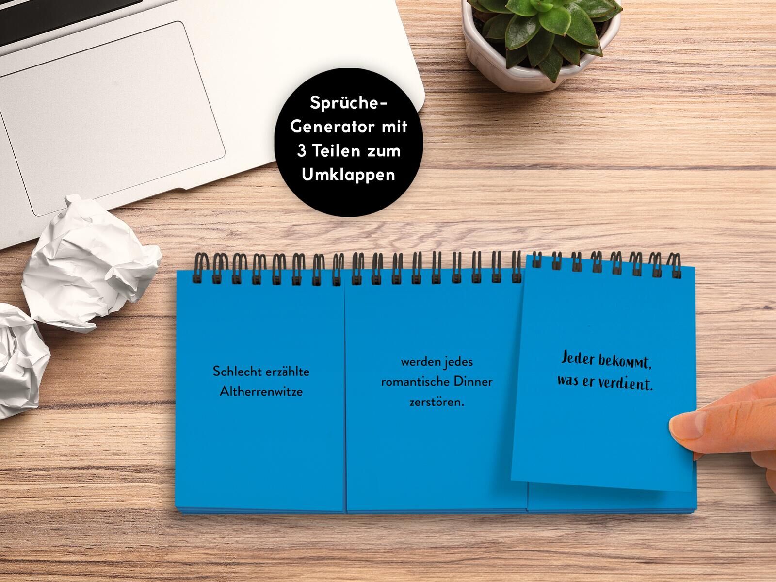 Böse Sprüche selbst generieren Manchmal braucht man einfach einen frechen Spruch oder einen sarkastischen Kommentar, um den Alltag etwas aufzuheitern. Genau dafür gibt es den Demotivator, einen Tischaufsteller mit 3 Teilen zum Umklappen, aus denen du immer wi...