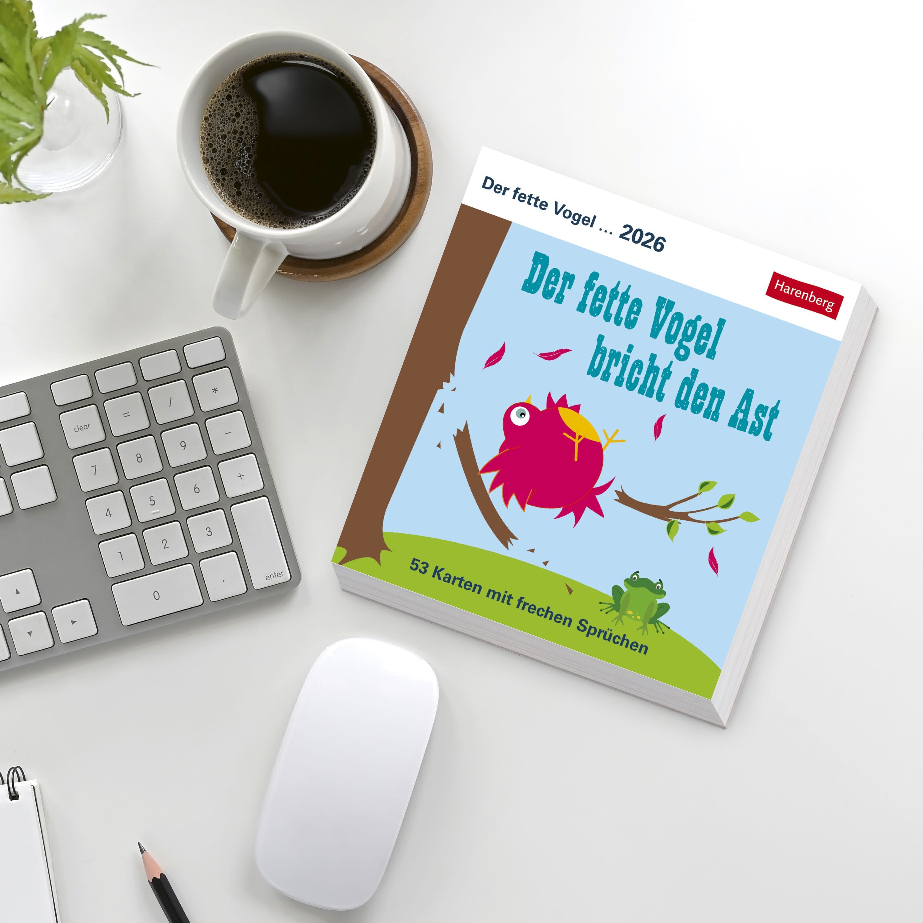 Der fette Vogel bricht den Ast Postkartenkalender 2026 - Wochenkalender - 53 Karten mit frechen Sprüchen