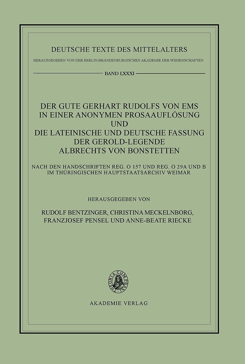 Keine ausführliche Beschreibung für "Der gute Gerhart Rudolfs von Ems in einer anonymen Prosaauflösung und die lateinische und deutsche Fassung der Gerold-Legende Albrechts von Bonstetten" verfügbar. Autorentext Christina Meckelborg ist Professorin f...