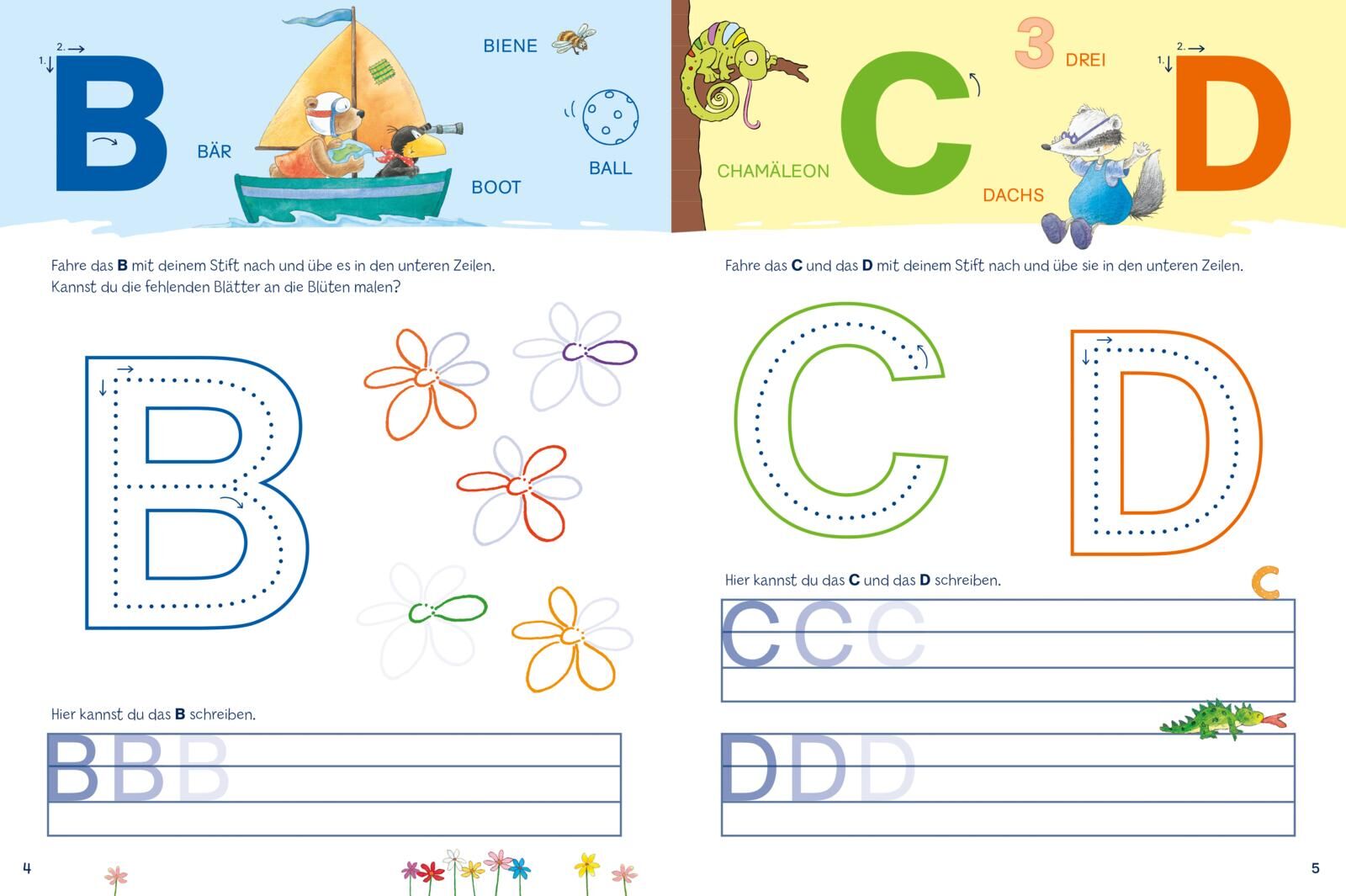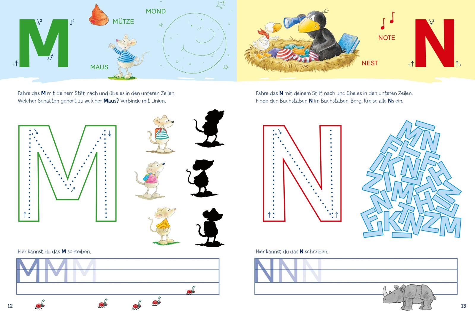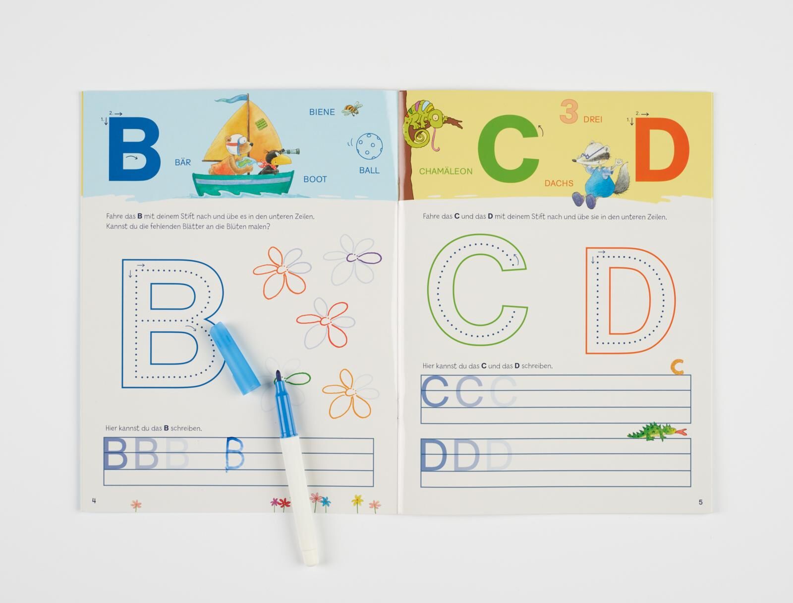 Nachfahren wegwischen, verbinden wegwischen ... ein tolles Beschäftigungsbuch vom kleinen Raben Socke für Kinder ab 4 Jahren. Der kleine Rabe Socke und seine Freunde zeigen Vorschulkindern die Buchstaben von A bis Z . Mit Buchstaben zum Nachfahren und Ausmale...