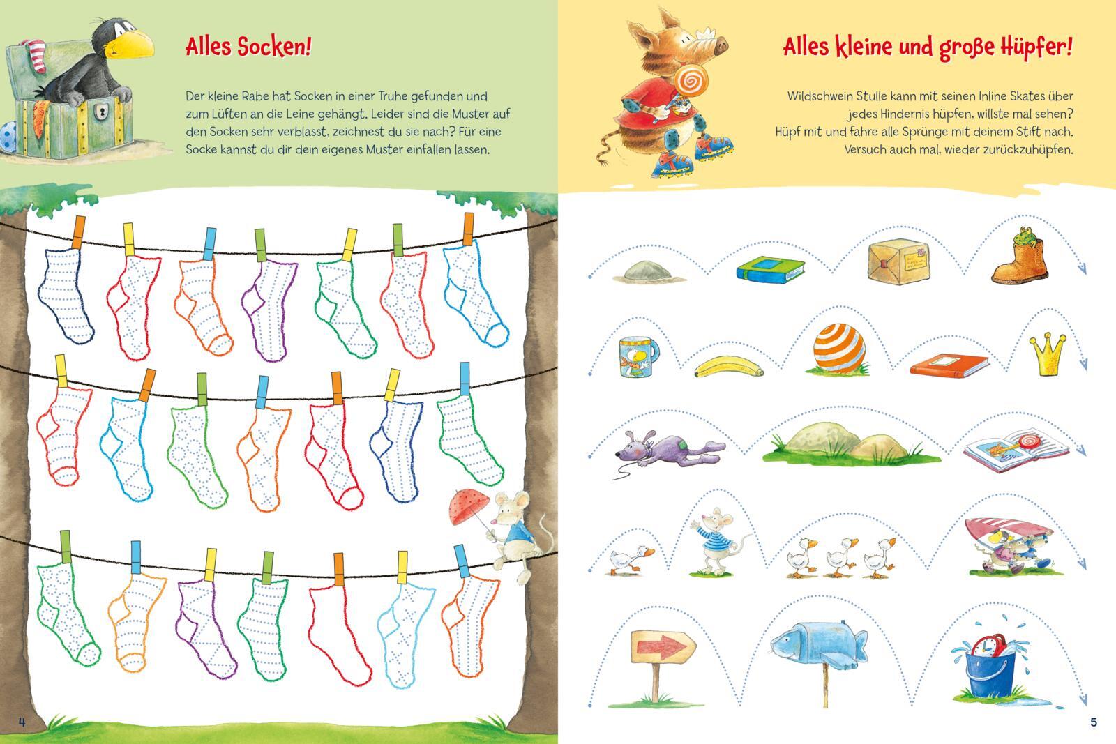 Nachfahren wegwischen, Linien folgen wegwischen ... ein tolles Beschäftigungsbuch vom kleinen Raben Socke für Kinder ab 4 Jahren. Der kleine Rabe Socke und seine Freunde zeigen Vorschulkindern wichtige Lernstufen für den Schulanfang: Einen Stift richtig zu ha...