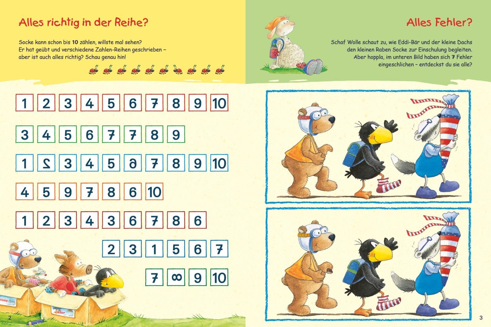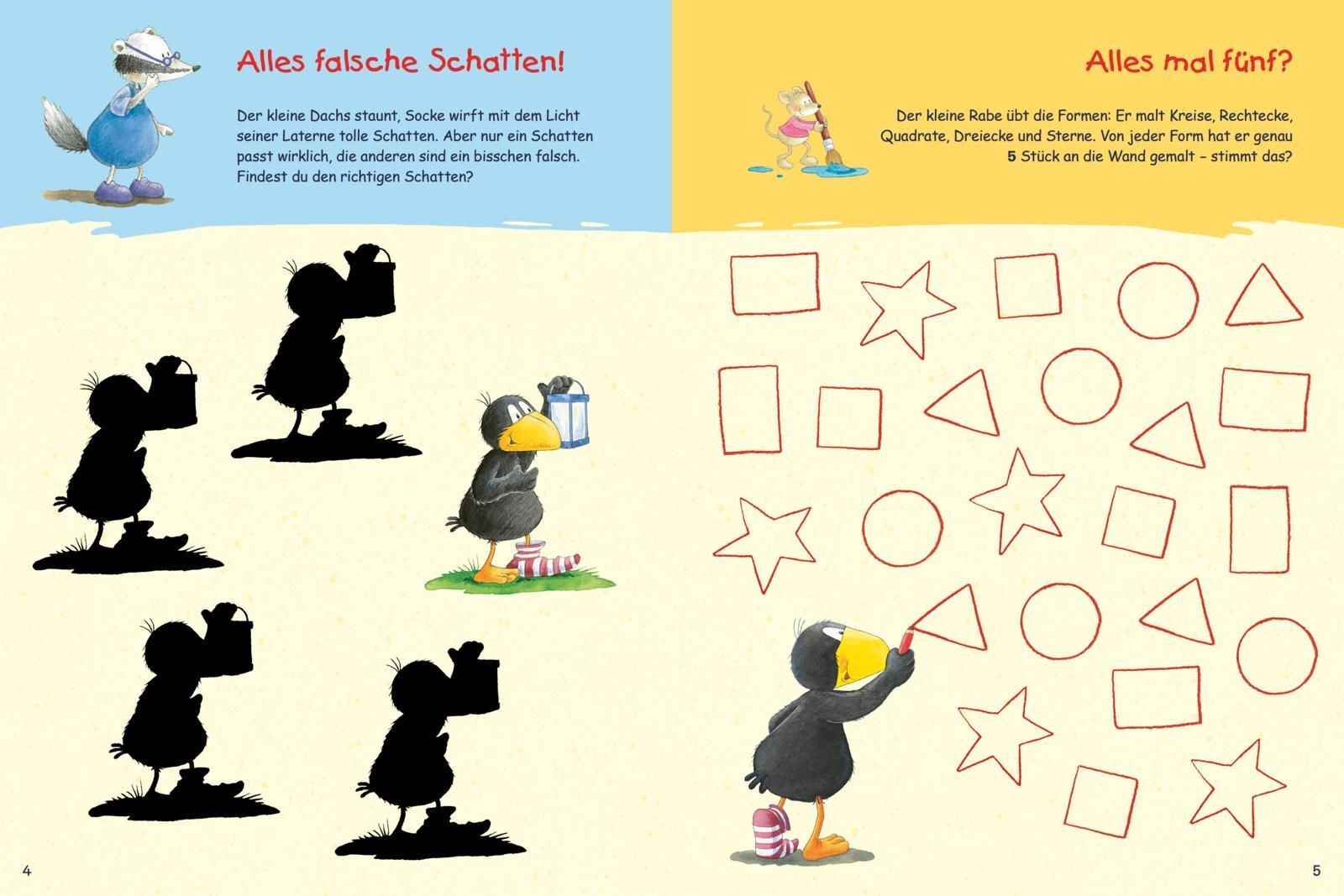 Spielerisch lernen mit dem kleinen Raben Socke fröhliches Beschäftigungsheft für Kinder ab 4 Jahren! Finde alle Fehler im Bild, suche das fehlende Puzzleteil, entdecke den falschen Buchstaben in der Reihe, vergleiche und verbinde ... vielseitige Aufgaben und ...