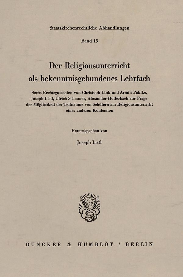 Inhalt Inhalt: C. Link / A. Pahlke, Religionsunterricht und Bekenntniszugehörigkeit. Die Teilnahme katholischer Schüler, die sich vom Religionsunterricht der eigenen Konfession abgemeldet haben, am evangelischen Religionsunterricht der Sekundarstufe II nach ni...