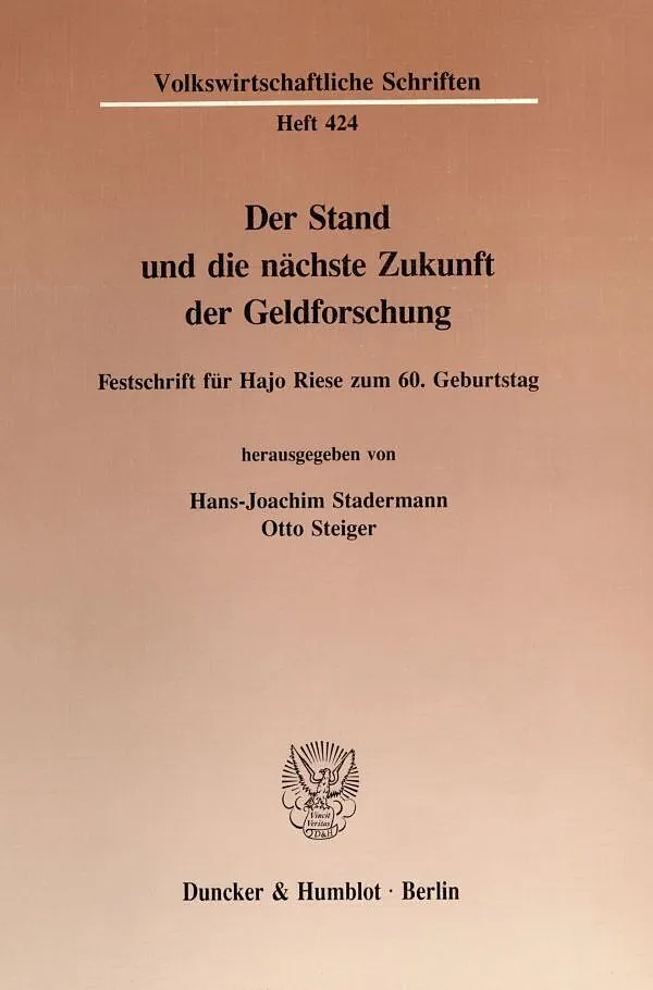 Inhalt Inhalt: H.-J. Stadermann / O. Steiger, Hajo Riese als Geldtheoretiker und die Aufgaben der Geldforschung - E. Grawert-May, Vom »Geist« des Geldes. Religionssoziologisches Stichwort zur Kontroverse zwischen Riese und Heinsohn/Steiger - J. Kaube / W. Sche...