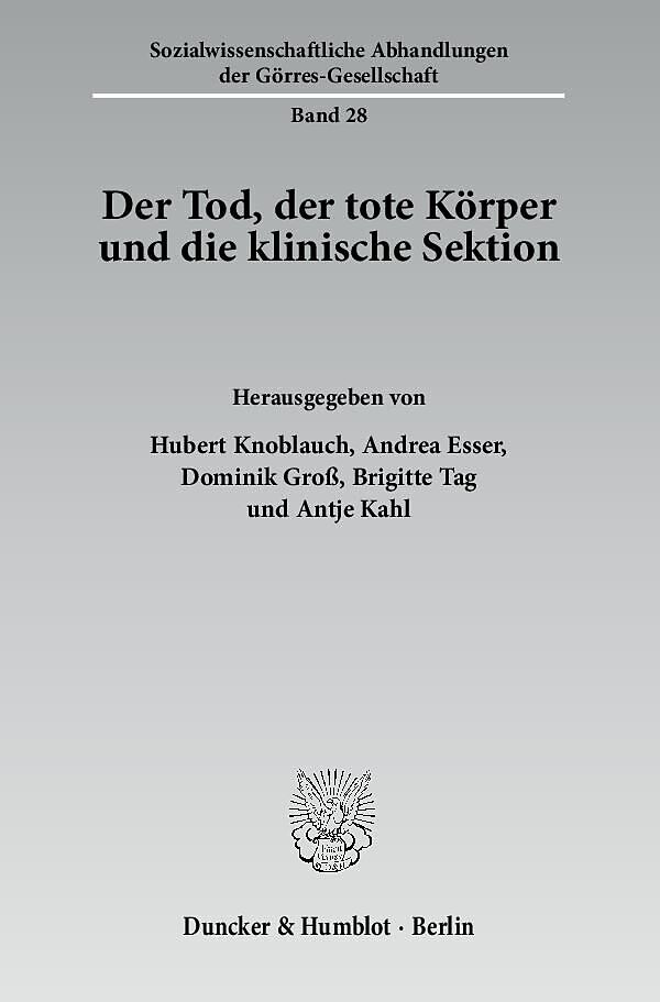 Der Band "Der Tod, der tote Körper und die klinische Sektion" präsentiert Ergebnisse des Forschungsprojekts "Tod und toter Körper. Zur Veränderung des Umgangs mit dem Tod in der gegenwärtigen Gesellschaft". Ausgehend vom Phänomen stark sinkender Sektionsquoten...Der Band "Der Tod, der tote Körper und die klinische Sektion" präsentiert Ergebnisse des Forschungsprojekts "Tod und toter Körper. Zur Veränderung des Umgangs mit dem Tod in der gegenwärtigen Gesellschaft". Ausgehend vom Phänomen stark sinkender Sektionsquoten wird aus philosophischer, soziologischer, medizinhistorischer und medizinethischer sowie rechtswissenschaftlicher und kulturwissenschaftlicher Sicht der Frage nach dem gegenwärtigen Status des menschlichen Leichnams nachgegangen.