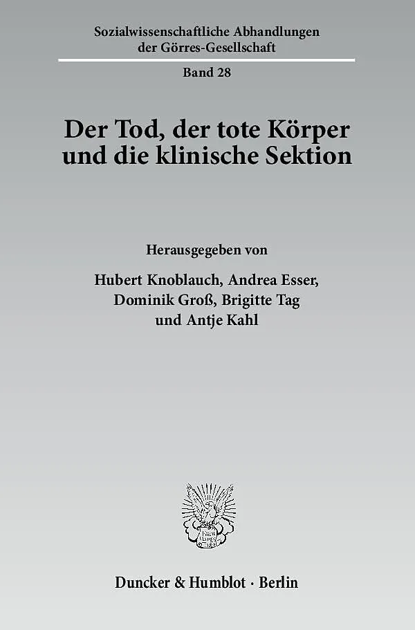 Der Band »Der Tod, der tote Körper und die klinische Sektion« präsentiert die Ergebnisse der ersten Tagung des von der Volkswagen Stiftung im Rahmen des Programms »Schlüsselthemen der Geisteswissenschaften« geförderten Forschungsprojekts »Tod und toter Körper. Zur Veränderung des Umgangs mit dem Tod in der gegenwärtigen Gesellschaft«. Die im Band versammelten Beiträge behandeln den Umgang mit dem Tod beispielhaft am Umgang mit dem toten Körper im Kontext der klinischen Sektion aus philosophischer, soziologischer, medizinhistorischer und medizinethischer sowie rechtswissenschaftlicher und kulturwissenschaftlicher Sicht. Internationale Expertinnen und Experten aus diesen vielfältigen Disziplinen nehmen den Gegenstand aus ihrer jeweils eigenen Perspektive in den Blick. Nach einer Einleitung der Herausgeber wird der Band mit philosophischen Reflexionen über den Tod, den toten Körper, die Leiche bzw. den Leichnam eröffnet. Anschließend wird aus soziologischer Sicht ein empirischer Blick auf die klinische Sektion geworfen. Ausgehend vom Phänomen zurückgehender Sektionsquoten werden mögliche Ursachen für diese Entwicklung u.a. im organisatorischen Kontext des Krankenhauses, in den Veränderungen der medialen Darstellung des toten Körpers sowie im Wandel der Selbst- und Berufsbilder von Ärzten, Pathologen und Gerichtsmedizinern gesucht. In einem weiteren Teil werden rechtliche Aspekte der klinischen Sektion aus deutscher, österreichischer und schweizerischer Sicht untersucht. Abschließend erfolgt neben einer theologischen Perspektive auf die Sektion eine kulturwissenschaftliche Auseinandersetzung mit verschiedenen Formen des Umgangs mit toten Körpern, welche in der Frage nach den Ungleichzeitigkeiten des gegenwärtigen Grenzverlaufs zwischen Leben und Tod ihren Ausklang findet. Der Band belegt den Wandel des Umgangs mit der menschlichen Leiche und präsentiert erste wissenschaftliche Ergebnisse der Forschung zum toten Körper.