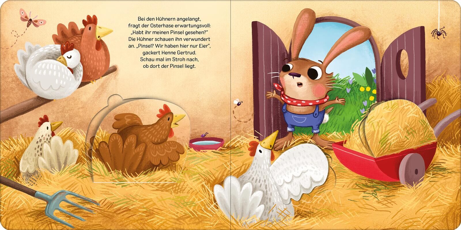 Ein vergesslicher Osterhase Der Osterhase ist bereit, die Ostereier zu bemalen - doch sein Pinsel ist verschwunden! Aufgeregt hoppelt er zu den Hühnern in den Stall. Doch auch die haben den Pinsel des Osterhasens nicht gesehen. Und auch die Enten am Teich sow...