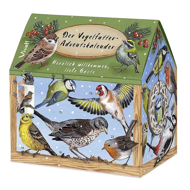 Ein Vogelhäuschen der besonderen Art ist dieser außergewöhnliche Adventskalender, der im Inneren eine schmackhafte Überraschung für die gefiederten Gäste im Winter bereithält. Befüllt mit nährstoffreichen Meisenknödeln- und ringen, kann damit zur Adventszeit a...