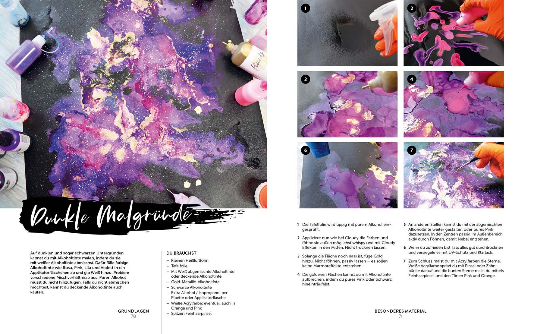 Der neue Trend 2020 nennt sich "Alcohol Ink"! Alkoholtinte wird nach dem Prinzip der Fluid Art eingesetzt. Im nassen Zustand werden die Farben nacheinander in das Bild gegeben und mit Hilfe von diversen Hilfsmitteln wie einem Fön, Heißluft oder Airbrush über ...