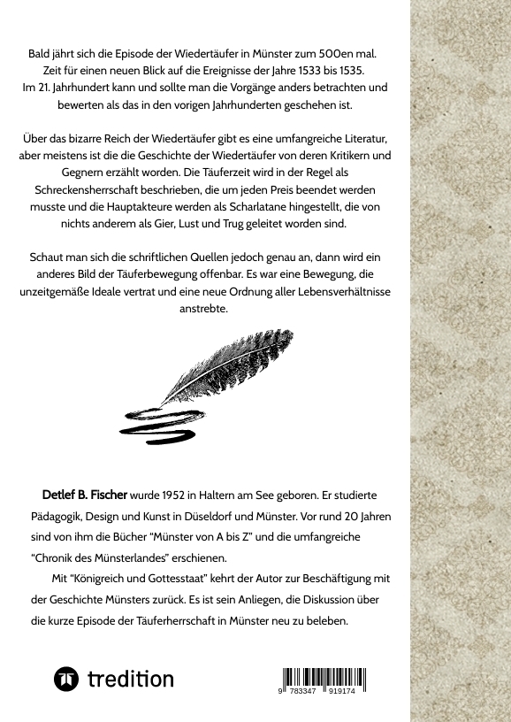 Die kurze Episode der Täuferherrschaft über Münster jährt sich bald zum 500en mal. Zeit für einen neuen Blick auf die Ereignisse de Jahre 1533 bis 1535. Im 21. Jahrhundert kann und sollte man die Vorgänge anders betrachten, einordnen und bewerten, als das in d...