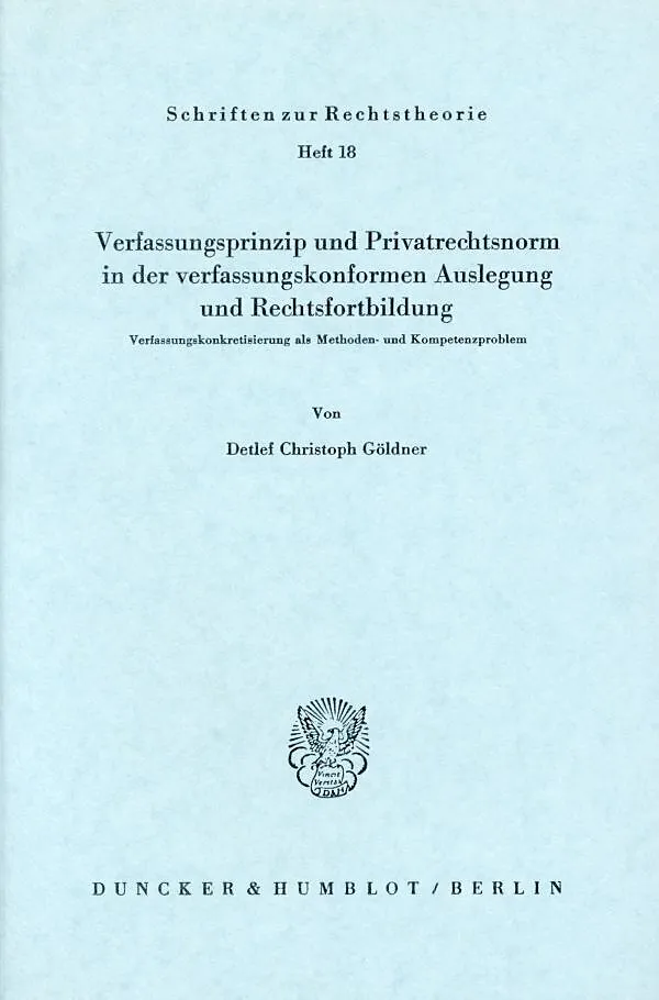 Verfassungsprinzip und Privatrechtsnorm in der verfassungskonformen Auslegung und Rechtsfortbildung.