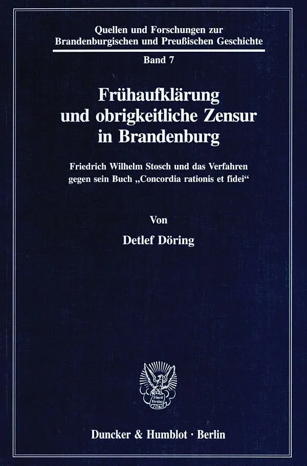 Die »Concordia rationis et fidei« (1692) des Berliner Geheimen Sekretärs Friedrich Wilhelm Stosch (1648-1704) galt im 18. Jahrhundert als einer der zentralen Texte zum Nachweis der Ausbreitung des Atheismus in Deutschland. Im 19. und 20. Jahrhundert diente das...