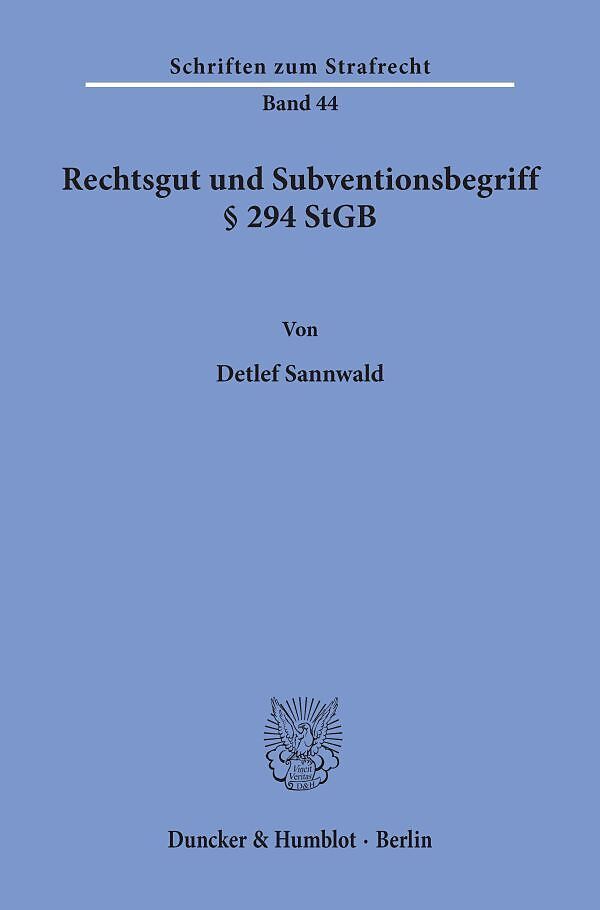 Rechtsgut und Subventionsbegriff § 294 StGB.