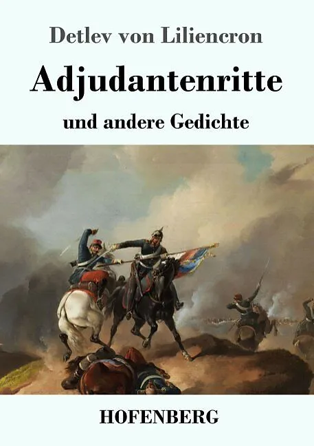 Detlev von Liliencron: Adjutantenritte und andere Gedichte Erstdruck der Sammlung: Leipzig (Wilhelm Friedrich) 1883. Inhaltsverzeichnis: Adjutantenritte. Der Gouverneur. An einen Freund. Sicilianen. Kleine Ballade. Tod in Aehren. In memoriam. Blümekens. Auf dem Hünengrabe. Goldammer. Das Haupt des heiligen Johannes in der Schüssel. König Regnar Lodbrog. Die Kapelle zum finstern Stern. König Abels Tod. Wer weiß wo. Inschrift. Erinnerung. Auf dem Kirchhofe. Herzog Knut der Erlauchte. Die Schlacht bei Bornhöved. Heidebilder. Du hast mich aber lange warten lassen. Liebeslied. Correspondenz. Four in hand. Mit der Pinasse. Verbotene Liebe. Müde. Frühling. Zu spät. Hans der Schwärmer. Nach dem Ball. Die gelbe Blume Eifersucht. Unheimlicher Teich. Die Nixe. Früh am Tage. Kurz ist der Frühling. Kalter Augusttag. »Ich habe dich so sehr geliebet«. Hochsommer im Walde. An der table d'hôte. Zerbrochener Keilerkopf. Kleine Geschichte. Herbst. Alt geworden. Auf eine Hand. Abschied und Rückkehr. Waldschnepfenjagd. Nachklänge. Verbannt. Abseits. Unwetter. Siegesfest. In einer großen Stadt. Italienische Nacht. Erwartung. Papst Clemens II. Und ich war fern. Der rote Mantel. Bruder Liederlich. Liebesnacht. Einer Toten. Sursum corda. Zwei Sterbende. Der Heidebrand. Vier Augen sind im Wege. Hartwich Reventlow. Auf dem Deiche. Rondel. Verbannt [2]. Ein Geheimnis. Trutz, blanke Hans. Una ex hisre morieris. Sicilianen [2]. Auf der Marschinsel. Verloren. Adjutantenritte. Neuausgabe mit einer Biographie des Autors. Herausgegeben von Karl-Maria Guth. Berlin 2018. Textgrundlage ist die Ausgabe: Detlev von Liliencron: Adjudantenritte und andere Gedichte, Leipzig: Wilhelm Friedrich, 1883. Die Paginierung obiger Ausgabe wird in dieser Neuausgabe als Marginalie zeilengenau mitgeführt. Umschlaggestaltung von Thomas Schultz-Overhage unter Verwendung des Bildes: Richard Benno Adam, Reitergefecht eines deutschen und französischen Kavalleristen 1871, entstanden vor 1937. Gesetzt aus der Minion Pro, 11 pt. Über den Autor: 1844 in Kiel geboren, nimmt Detlev von Liliencron am Preußisch-Österreichischen Krieg und am Deutsch-Französischen Krieg teil. 1875 muss er wegen seiner hohen Schulden den aktiven Militärdienst verlassen und schreibt als Hauptmann der Reserve 1883 mit »Adjutantenritte und andere Gedichte« einen ersten Lyrikband, der ihn unter Naturalisten bekannt macht. Zeit seines Lebens begleiten ihn Schulden und wirtschaftliche Sorgen, erst 1901 kann er mit Hilfe von Freunden eine feste Wohnung beziehen. Kurz nachdem ihm die Universität Kiel 1909 die Ehrendoktorwürde verleiht stirbt Detlev von Liliencron an einer Lungenentzündung in Alt-Rahlstedt.