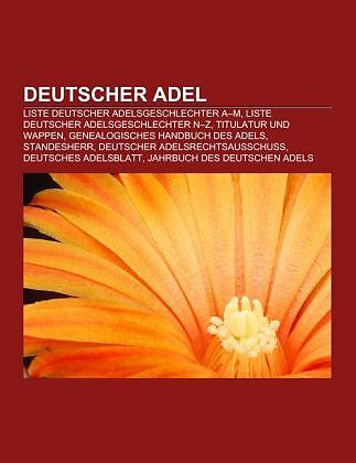 Quelle: Wikipedia. Seiten: 30. Kapitel: Liste deutscher Adelsgeschlechter A M, Liste deutscher Adelsgeschlechter N Z, Titulatur und Wappen, Genealogisches Handbuch des Adels, Standesherr, Deutscher Adelsrechtsausschuß, Deutsches Adelsblatt, Jahrbuch des Deutsc...Quelle: Wikipedia. Seiten: 30. Kapitel: Liste deutscher Adelsgeschlechter A M, Liste deutscher Adelsgeschlechter N Z, Titulatur und Wappen, Genealogisches Handbuch des Adels, Standesherr, Deutscher Adelsrechtsausschuß, Deutsches Adelsblatt, Jahrbuch des Deutschen Adels, Deutsches Adelsarchiv, Neues allgemeines deutsches Adels-Lexicon, Gothaisches Genealogisches Handbuch. Auszug: Diese Liste umfasst nur Adelsgeschlechter im deutschen Sprachraum (Deutschland, Österreich, Schweiz und teilweise Polen und Italien), die schon in der deutschsprachigen Wikipedia enthalten sind. Ausländische Geschlechter, die nicht in den deutschen Sprachraum gehören, wurden hier nicht erfasst. Nicht in der deutschen Wikipedia enthaltene Geschlechter wurden ebenfalls nicht aufgenommen. Falls Adelsgeschlechter in Wikipedia nachgetragen werden, müsste dies auch hier geschehen. Die Liste enthält den Namen des Geschlechts (ohne Adelstitel), den Zeitraum seines Bestehens sowie Anmerkungen zu Herkunft, lokaler Verbreitung, Standeserhöhungen und zum Wappen. Hier ein anklickbares Inhaltverzeichnis für beide Teile: Für die Adelsgeschlechter der Buchstaben N bis Z siehe Diese Liste umfasst nur Adelsgeschlechter im deutschen Sprachraum (Deutschland, Österreich, Schweiz und teilweise Polen und Italien), die schon in der deutschsprachigen Wikipedia enthalten sind. Ausländische Geschlechter, die nicht in den deutschen Sprachraum gehören, wurden hier nicht erfasst. Nicht in der deutschen Wikipedia enthaltene Geschlechter wurden ebenfalls nicht aufgenommen. Falls Adelsgeschlechter neu in Wikipedia nachgetragen werden, müsste dies auch hier geschehen. Die Liste enthält den Namen des Geschlechts (ohne Adelstitel), den Zeitraum des Bestehens, Anmerkungen zu Herkunft, lokaler Verbreitung, Standeserhöhungen, und zum Wappen. Adelsgeschlechter beginnend mit den Buchstaben A bis M siehe in der Liste deutscher Adelsgeschlechter A M. Die Deutschen Kaiser nach 1873 führten eine Vielzahl von Titeln und Wappen, die in verschiedenen Zusammensetzungen zu den offiziell benutzten Titeln und Wappen wurden. Titel und Wappen wurden 1873 letztmalig festgelegt. Alle Adeligen führen einen Adelstitel. In den Herrschertiteln werden alle Titel zusammengestellt, die ein Herrscher auf sich vereinigt hat. Der Titel ist die öffentliche Selbstdarstellung der Person in ihrem politischen Umfeld, daher