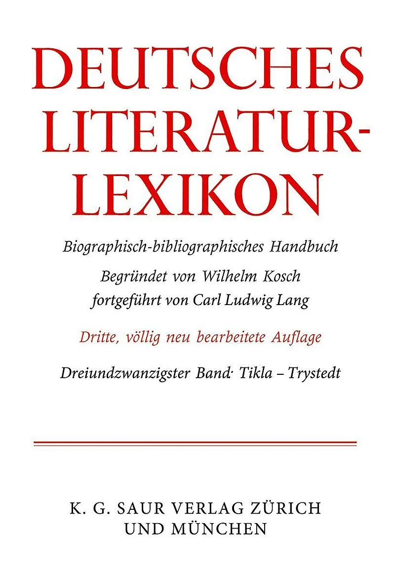 Keine ausführliche Beschreibung für "Tikla - Trystedt" verfügbar. Klappentext Das Deutsche Literatur-Lexikon ist eines der bekanntesten, umfangreichsten und zuverlässigsten Nachschlagewerke zur deutschen Literatur. Es ist einzigartig in seiner umfass...