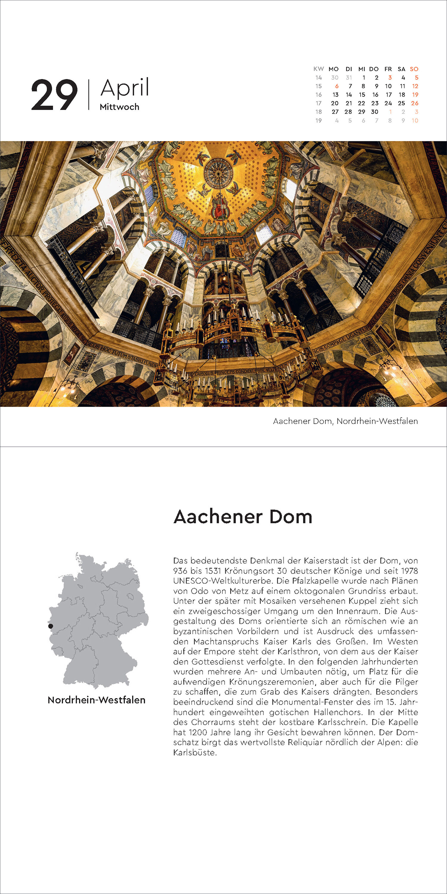 Dieser KUNTH Abreißkalender Deutschland 2026 führt zu 365 traumhaften Orten in Bild und Text. Täglich gibt es Neues zu entdecken, und täglich illustrieren brillante Bilder ein neues Thema. Es muss nicht immer die weite Welt sein. Auch die eigene Heimat hat of...